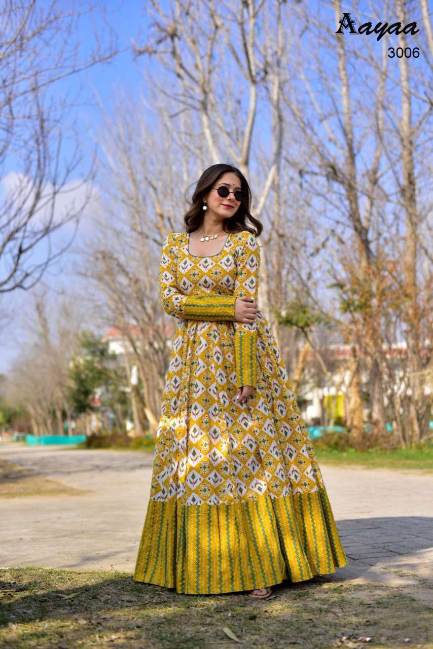 Catalog Name – Aayaa vol 4 Fabric:- Design no 3006 - Pure Muslin with heavy digital print & full inner Work – Heavy Digital Printed Size:- M(38),L(40),XL(42),XXl(44) Length – Up to 55 inch Stitched type: Full stitched Weight – 800gm Rate – 899/- Disclaimer: Colour Of The Garment May Differ From The Picture By 10-12% |
