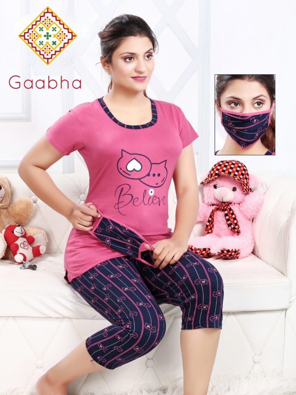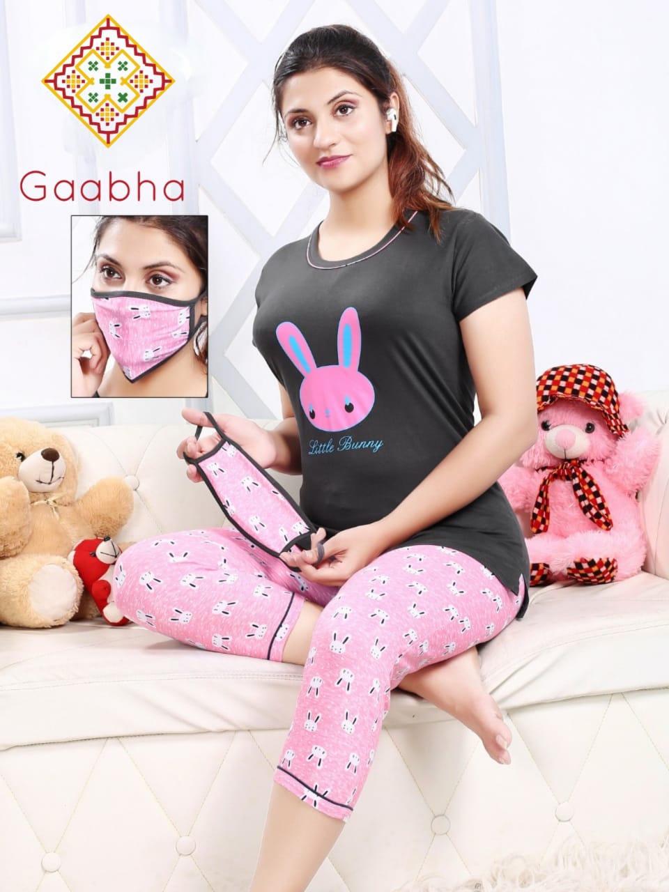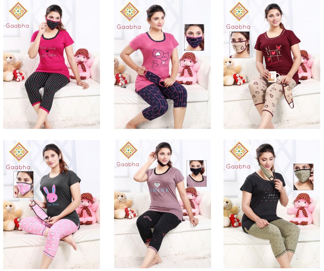 K4u Launch Nightsuits With Mask Vol 2 Premium Hosiery Capri Style Night Suit
