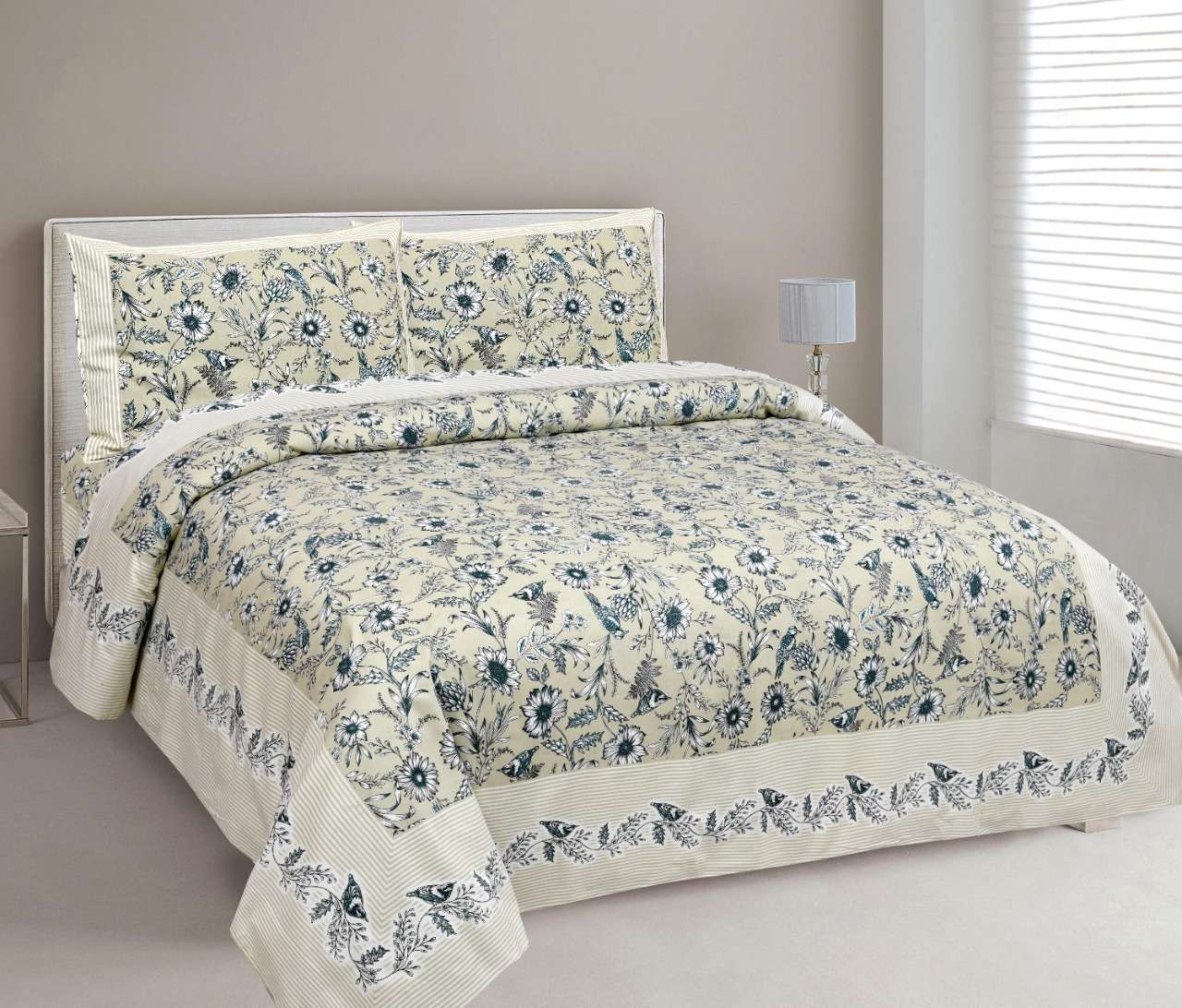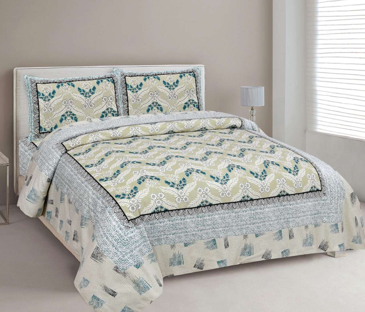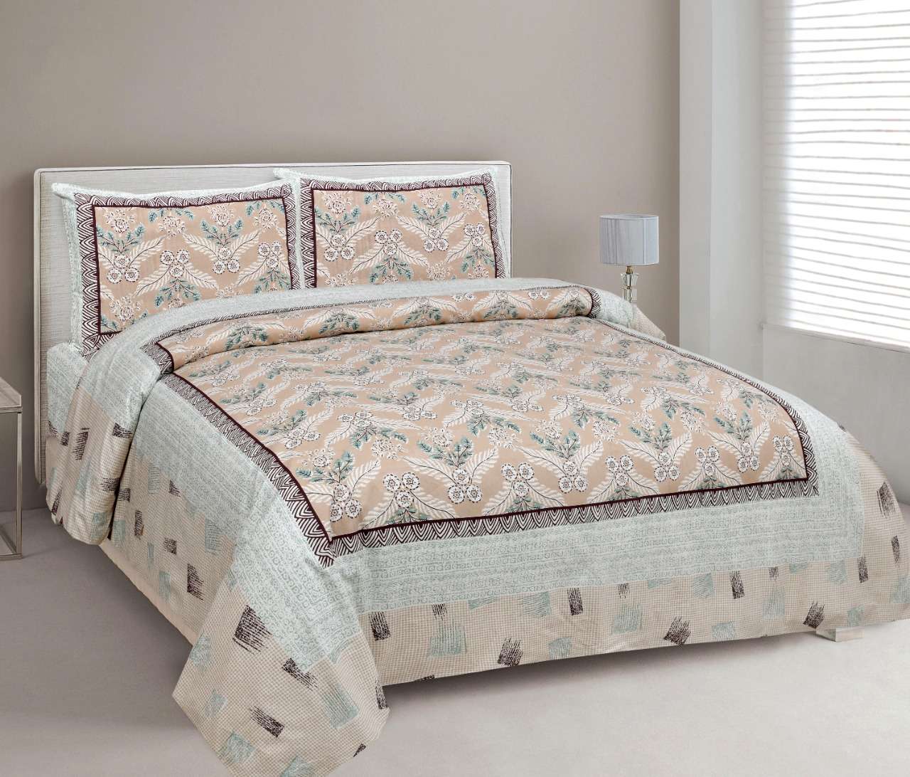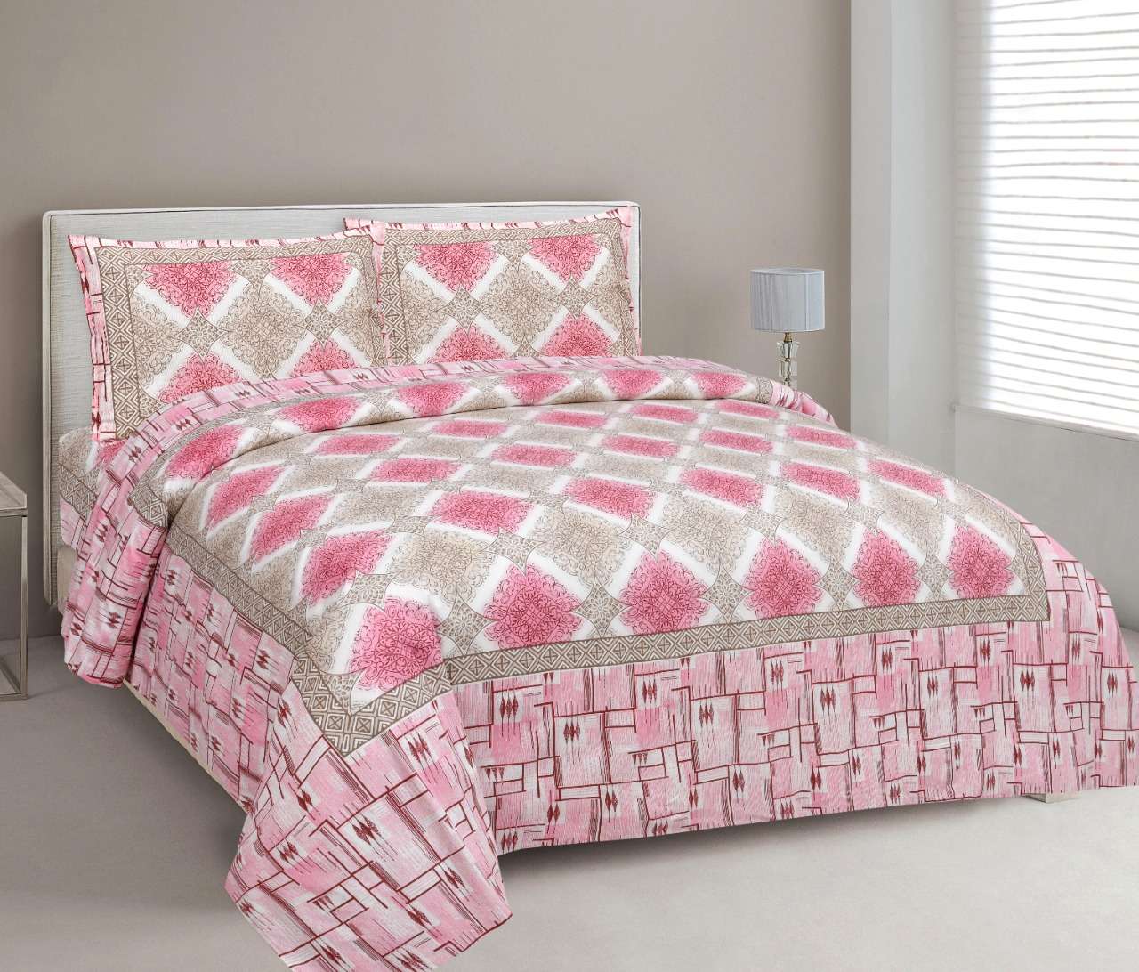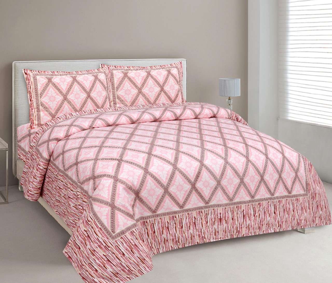 K4u Monarch King Size Cotton Traditional Design Bedsheet With Matching Pillow Cover