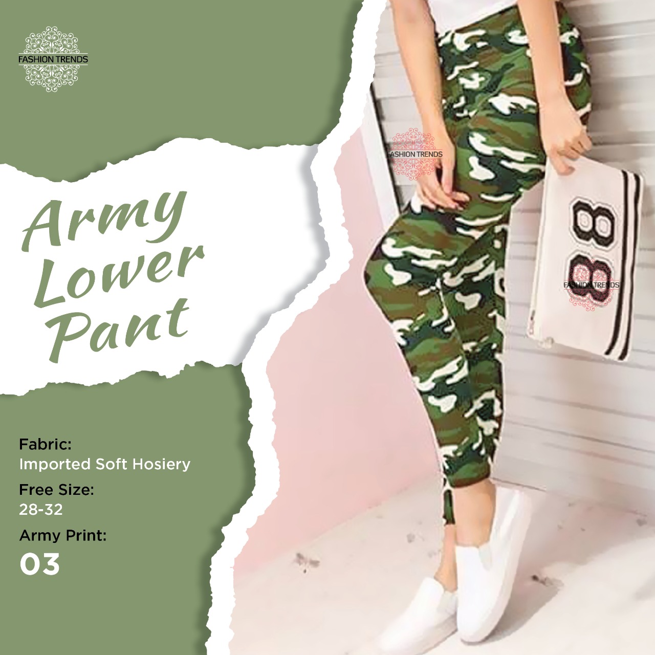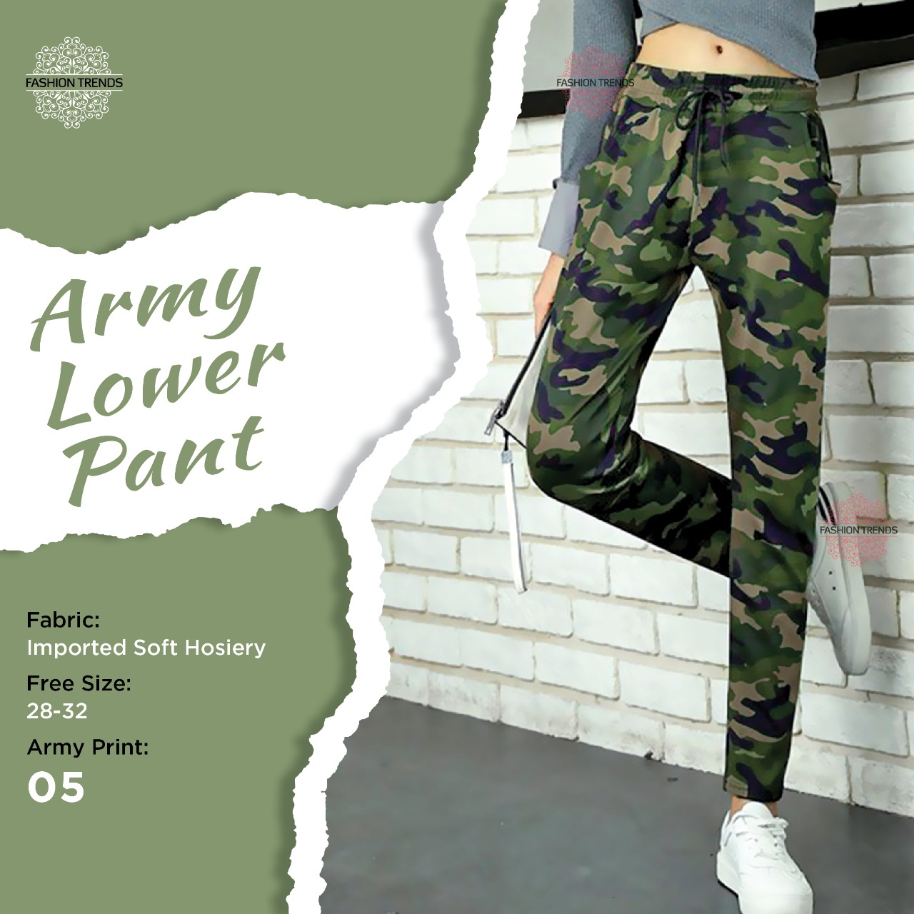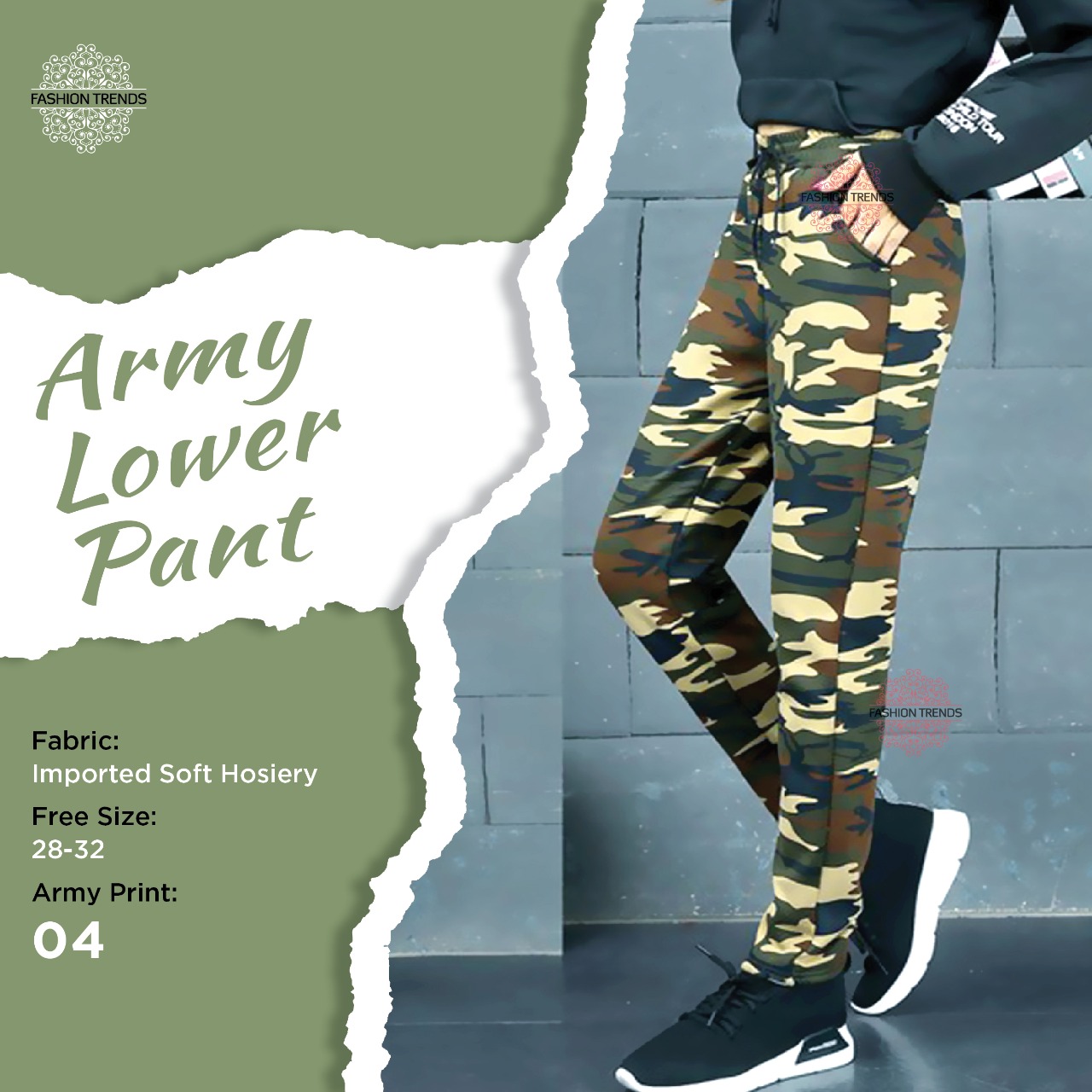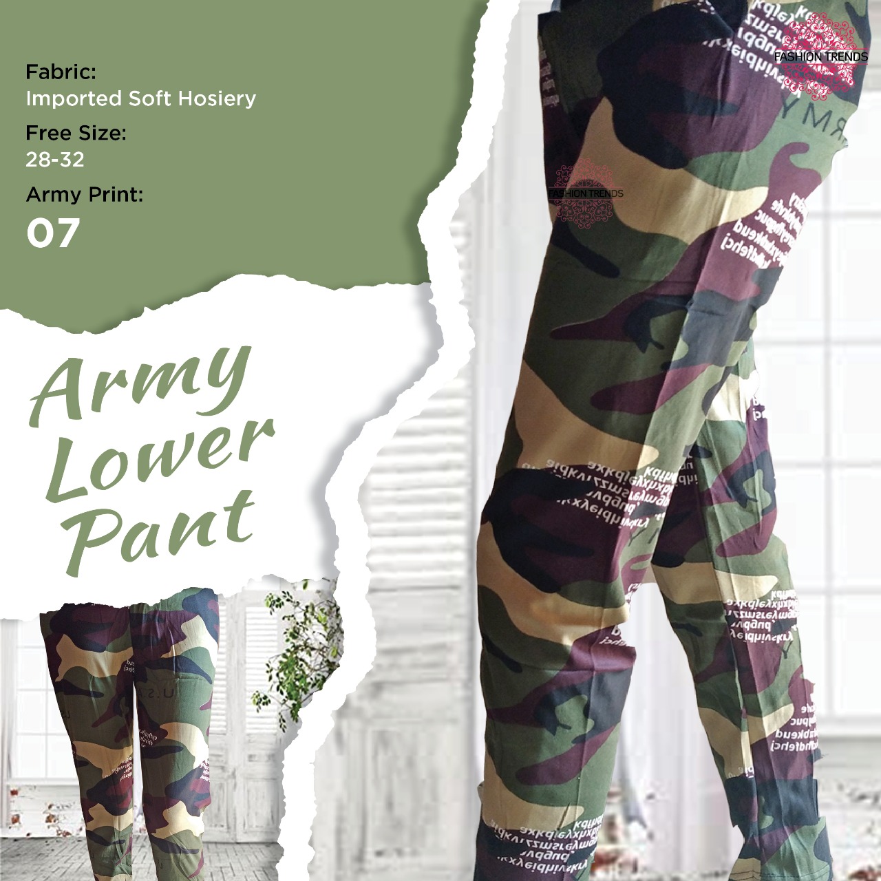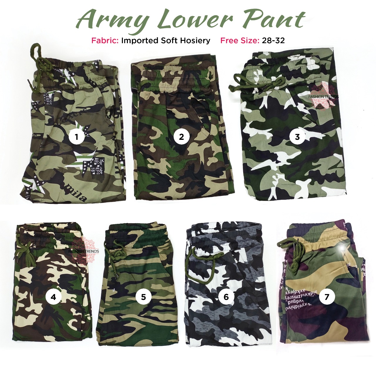 SURAT K4U present... Army Lower Pant Imported Soft Hosiery Free Size: 28-32 wholesale price ₹300/ GST 5% EXTRA Available in 7 prints |