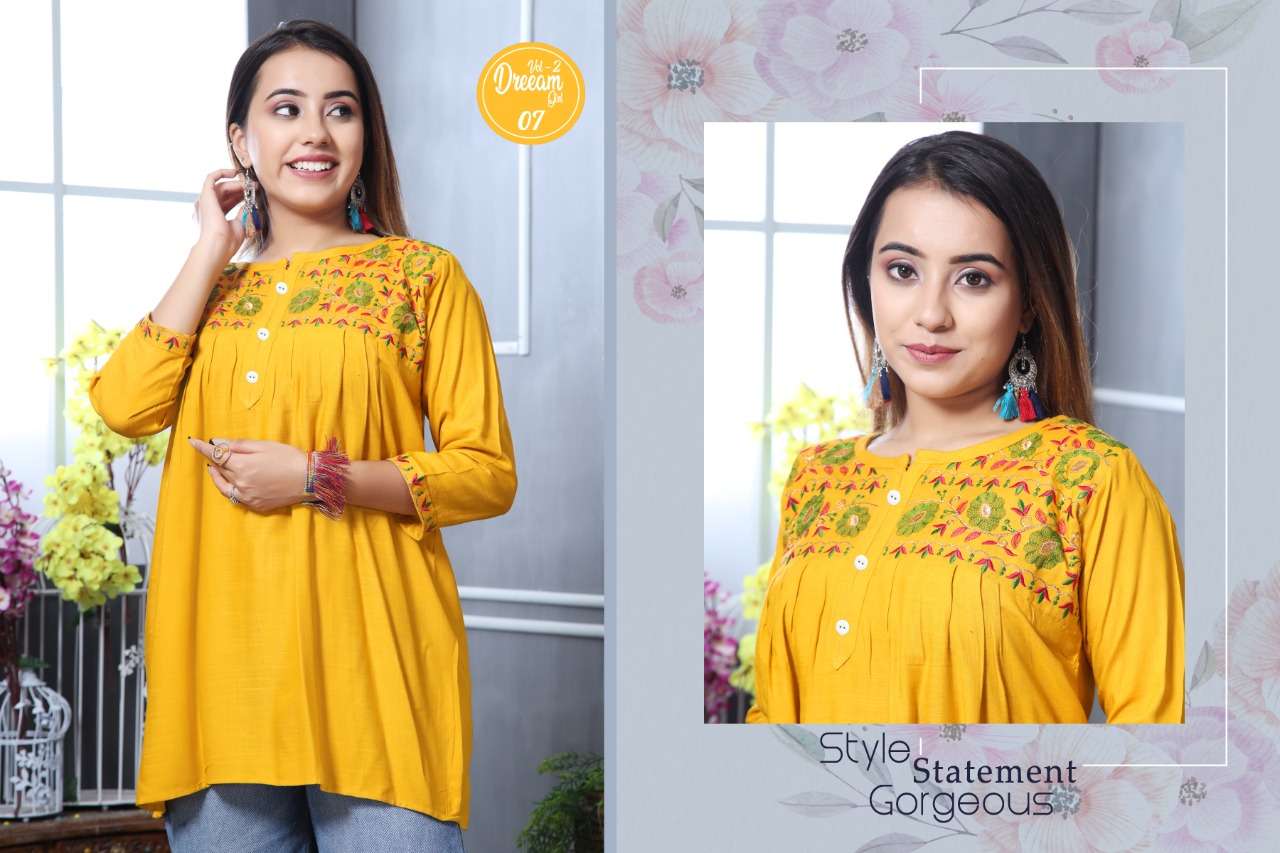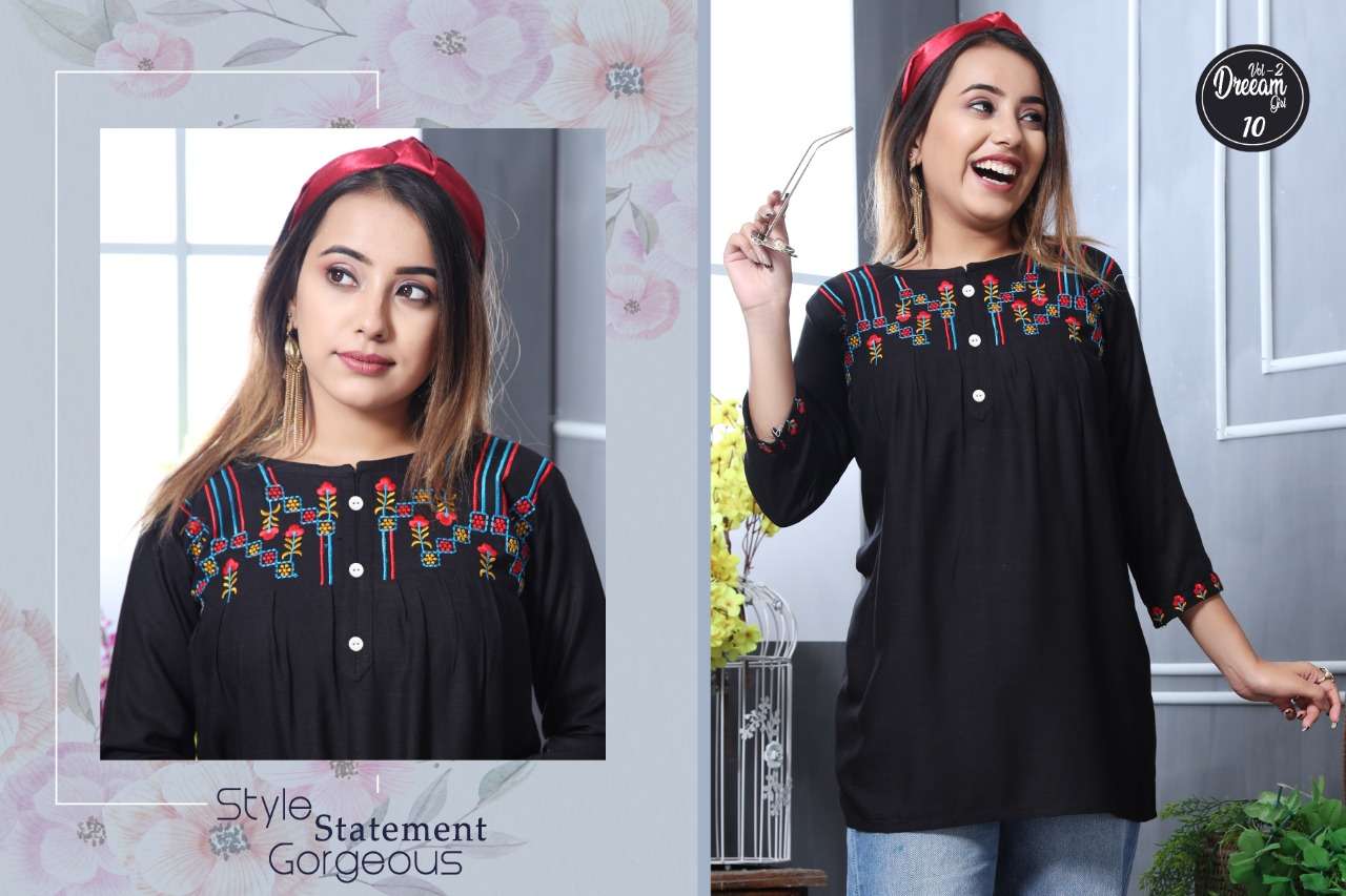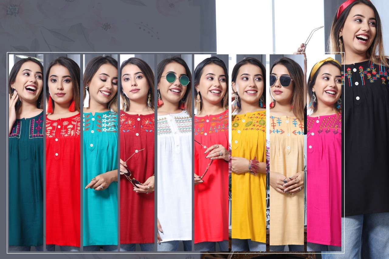 K4U PRESENTS.... COLOURFULL CONCEPT SHORT TOPS 🦚 DREAMGIRL VOL 2 🦚 FABRIC : 14 KG RAYON SLUB DESIGNS : 10 SIZE : M L XL PATTERN : SHORT TOPS JEANS STYLE RATE : 299/- |