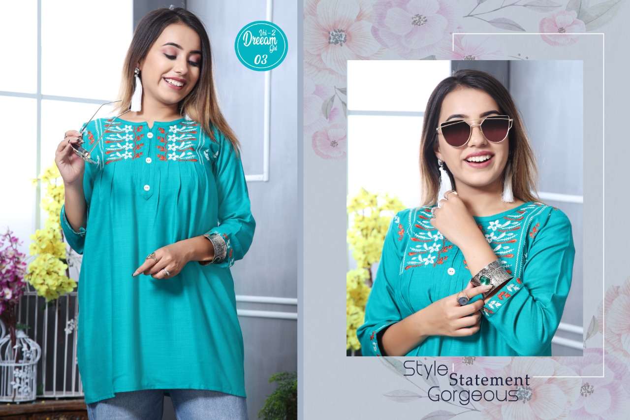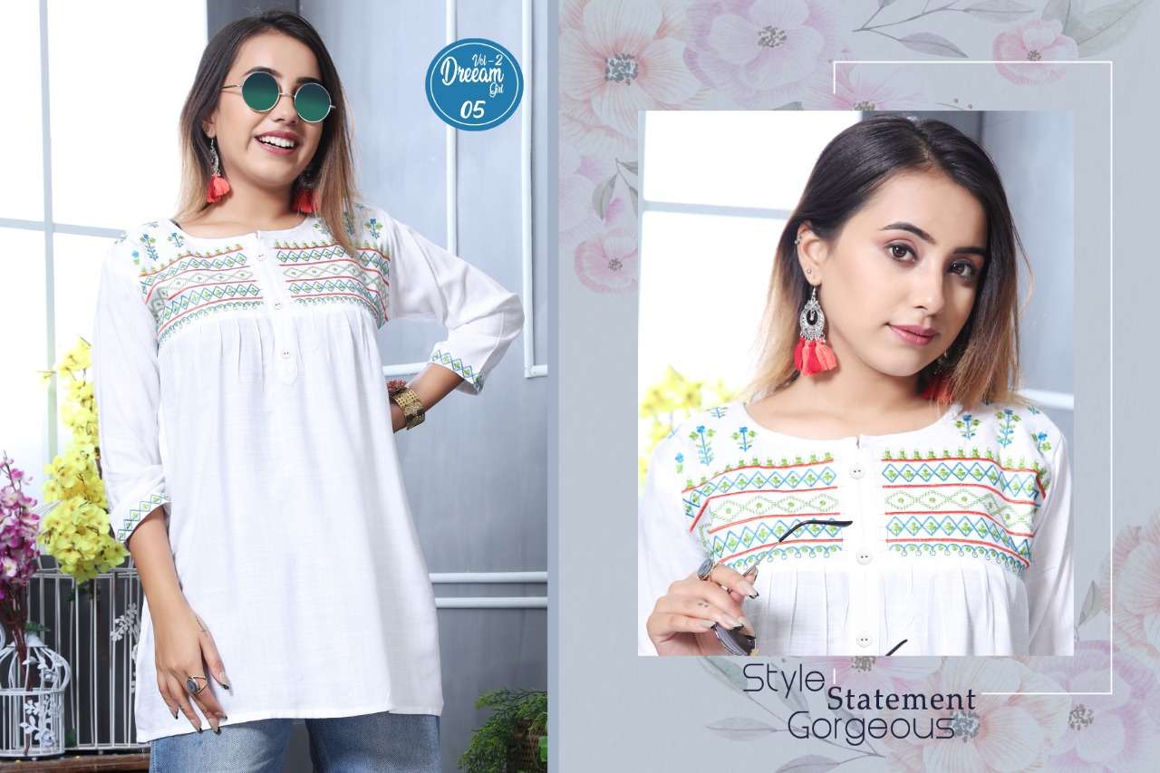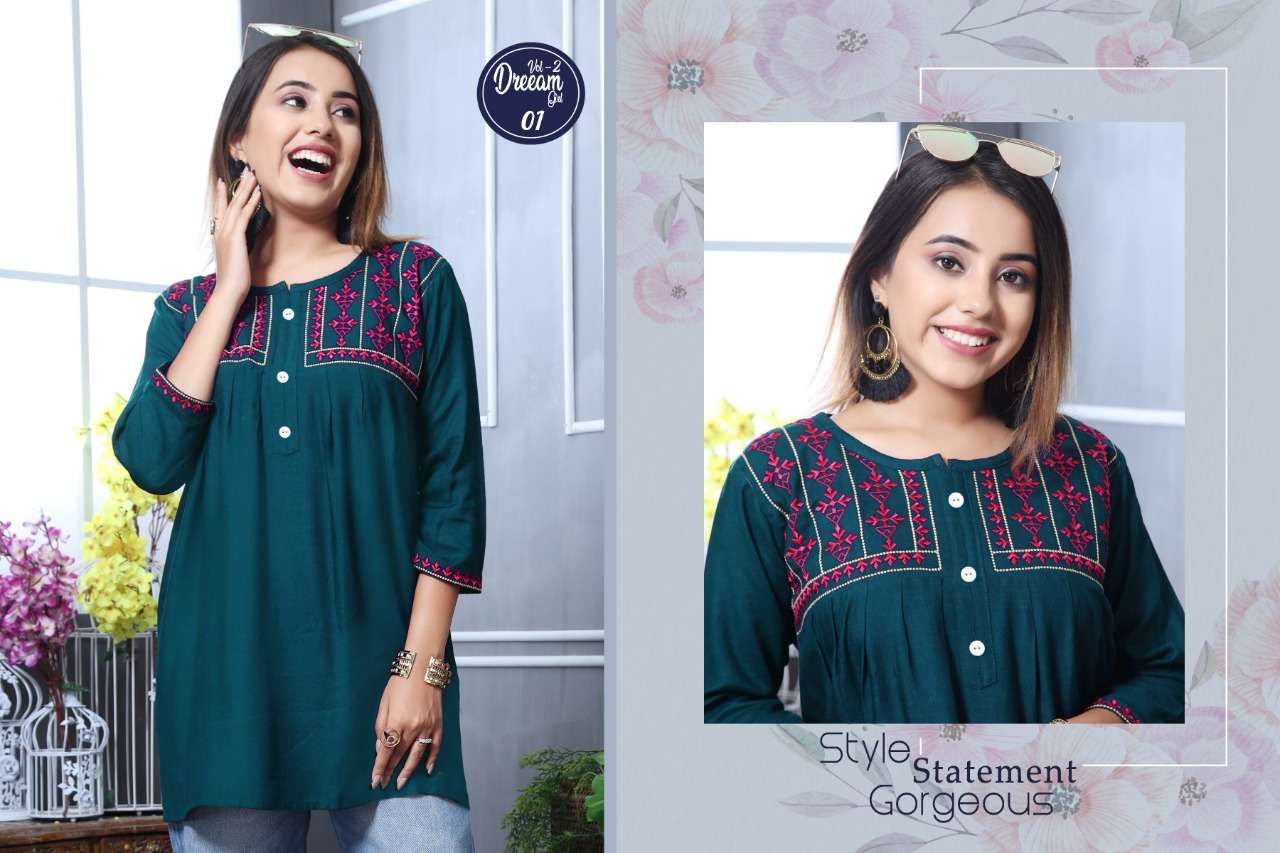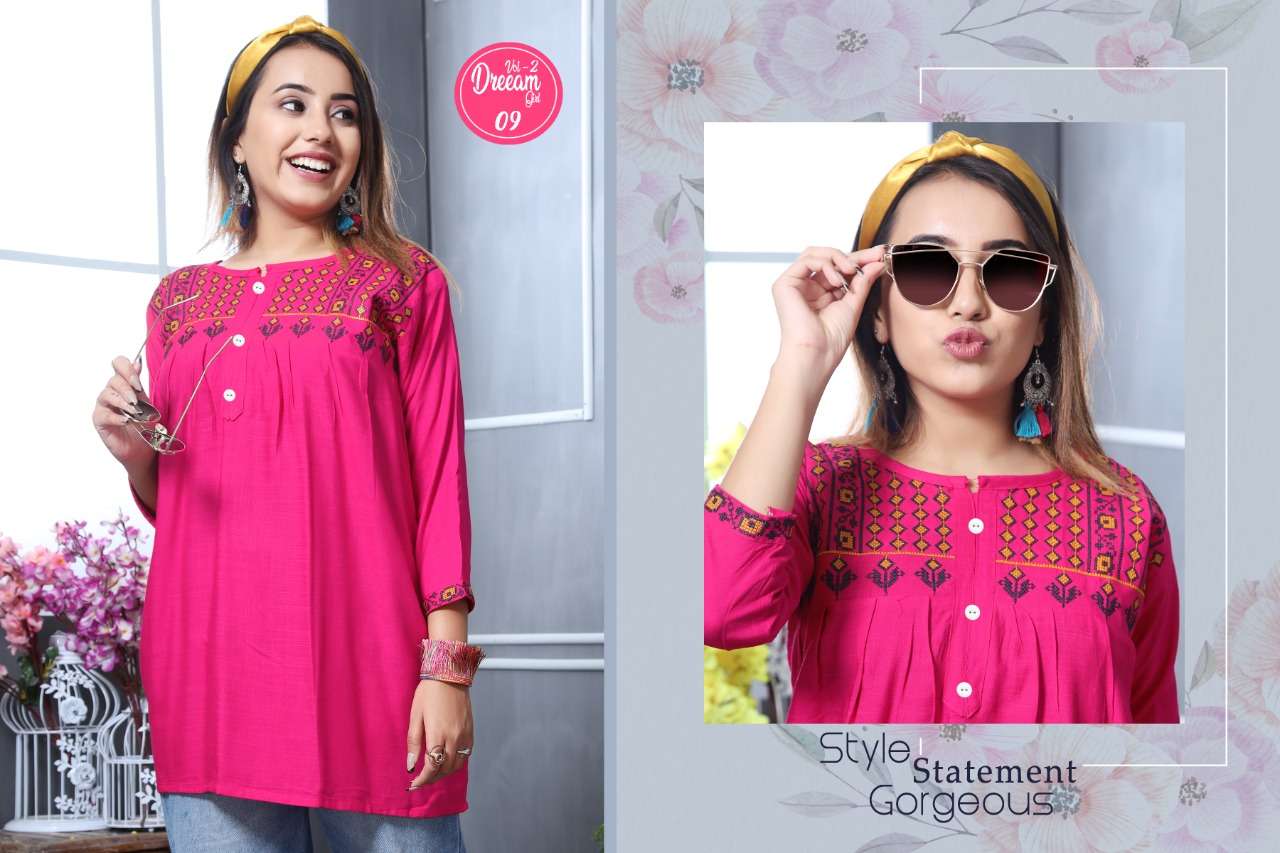 K4U PRESENTS.... COLOURFULL CONCEPT SHORT TOPS 🦚 DREAMGIRL VOL 2 🦚 FABRIC : 14 KG RAYON SLUB DESIGNS : 10 SIZE : M L XL PATTERN : SHORT TOPS JEANS STYLE RATE : 299/- |