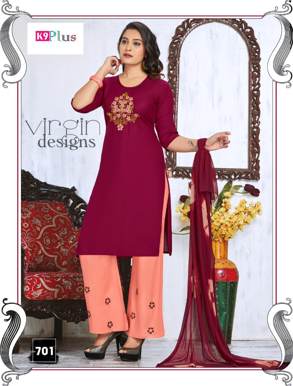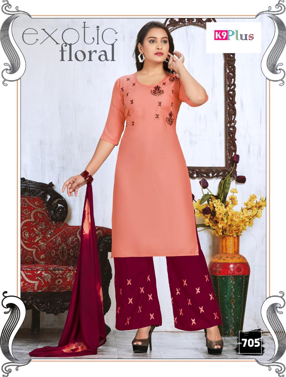 K9 Plus Plazo Rose Vol 6 Top Palazzo With Dupatta 3 Piece Readymade Collection