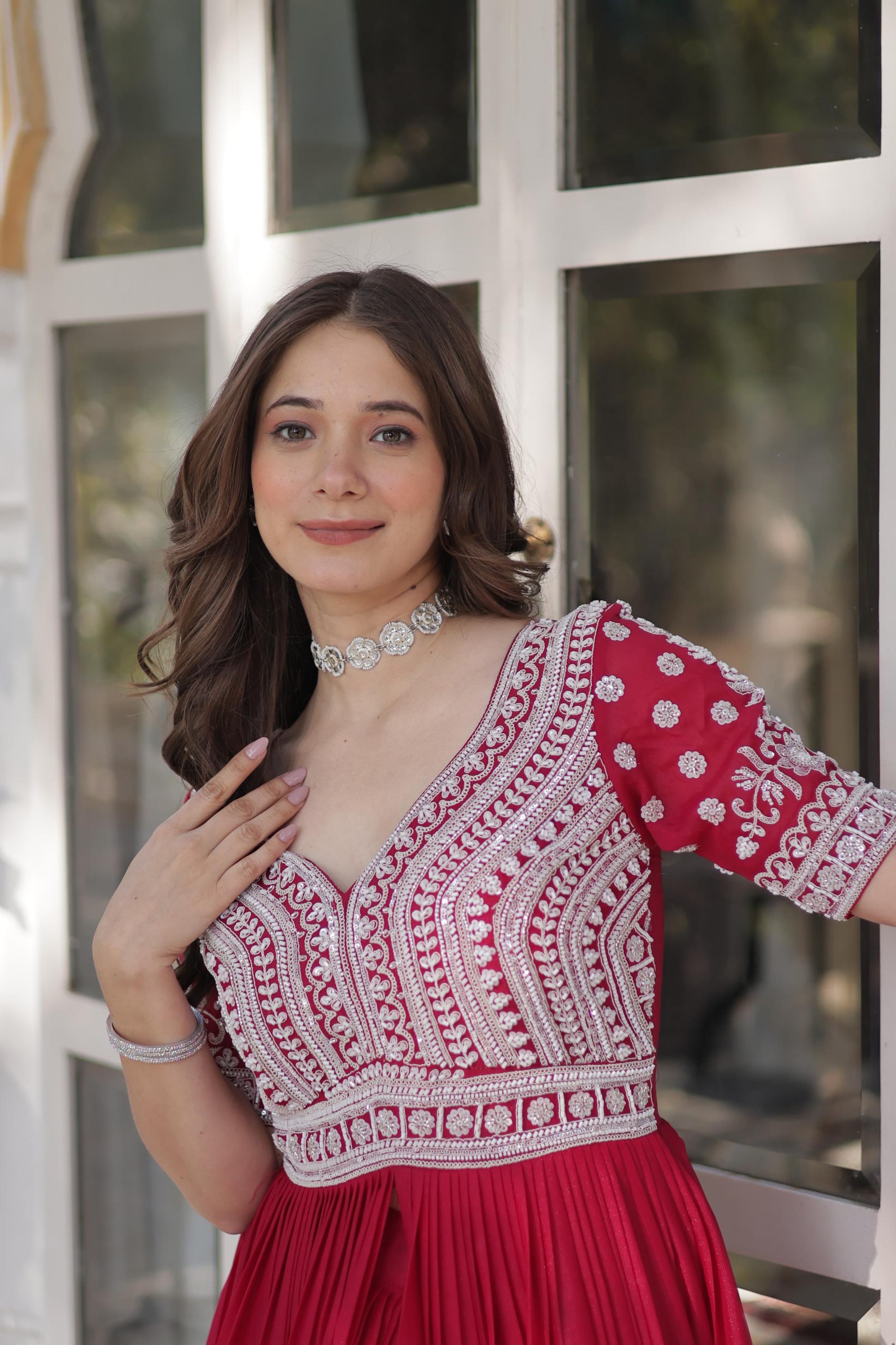 ka 1158 star georgette fully stitch elegance gown with dupatta
