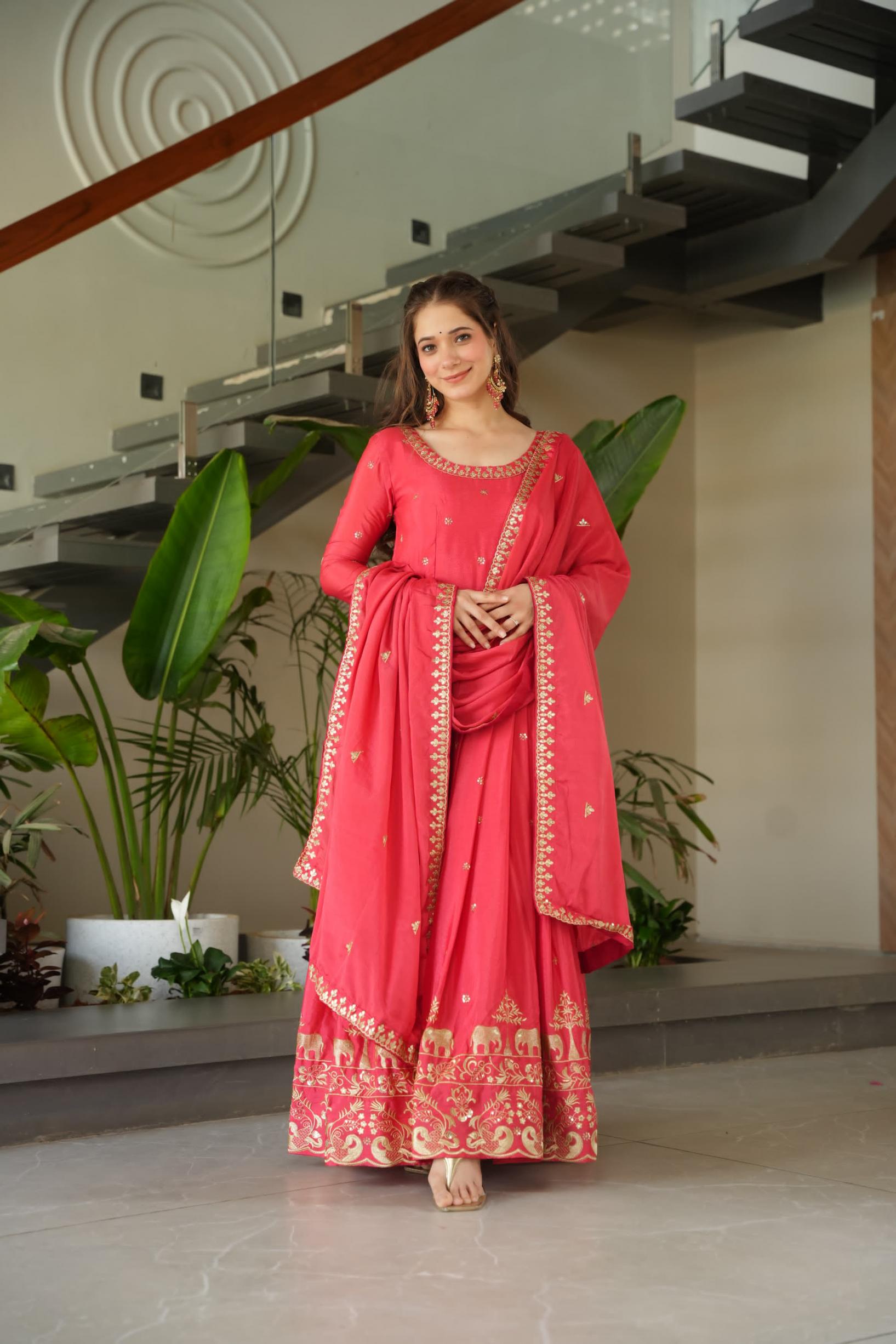 ka 1165 chinon readymade classic zari sequins work gown with dupatta