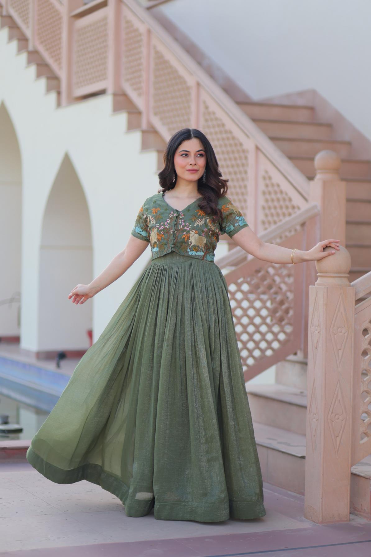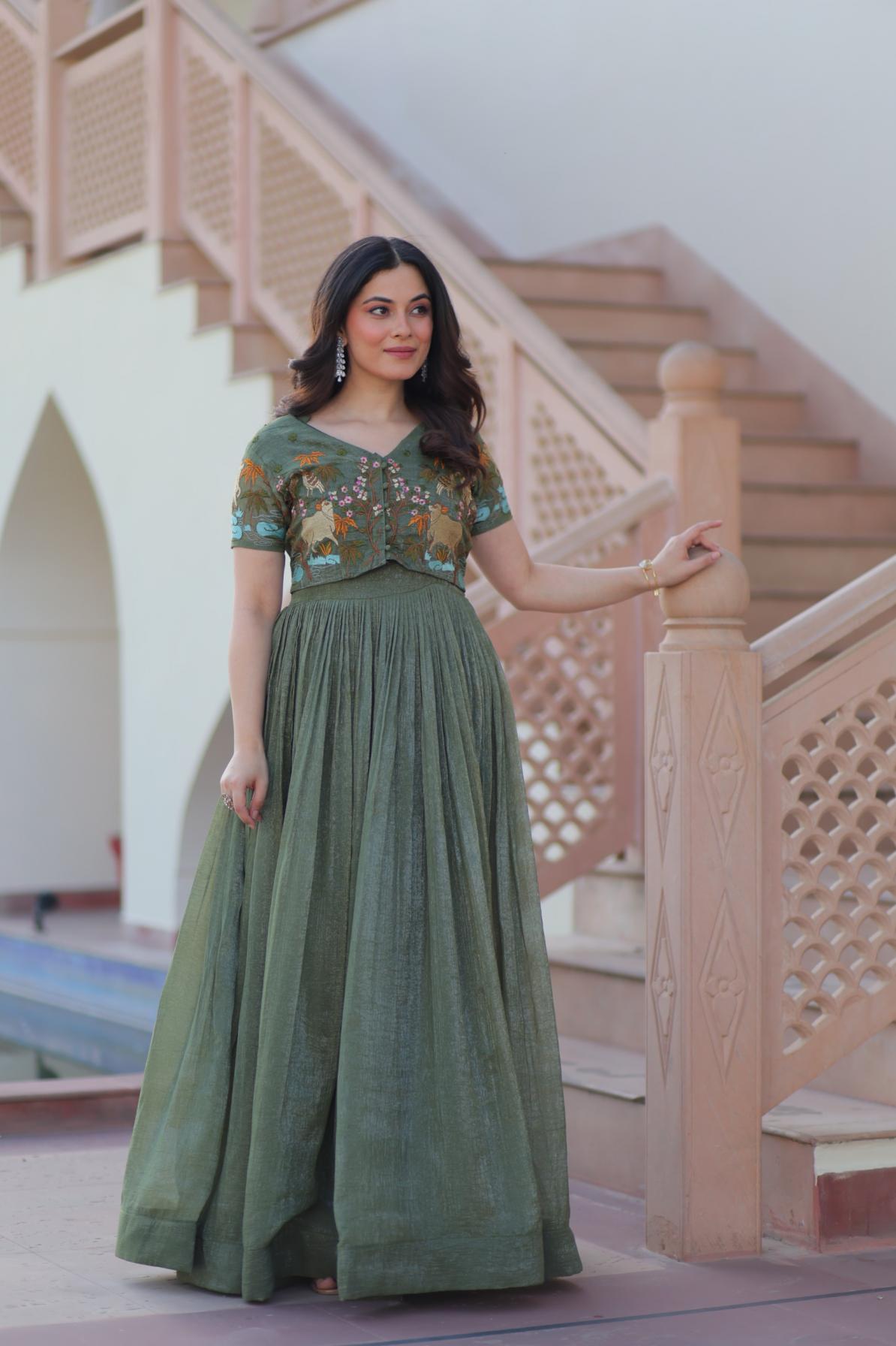 💃🏽 PREMIUM DESIGNER READYMADE KOTI-GOWN COLLECTIONS. 👜 Code:- KA-1170 👉🏻 Gown :- 👇🏻 👉🏻 Fabrics :- Silver Crunchy Fabric 👉🏻 Koti 👉🏻 Colour :- 2 👉🏻 Package Contains:- Gown, Koti 👉🏻 Weight:- 0.700 kg 👉🏻 Rate:- 900/-INR |