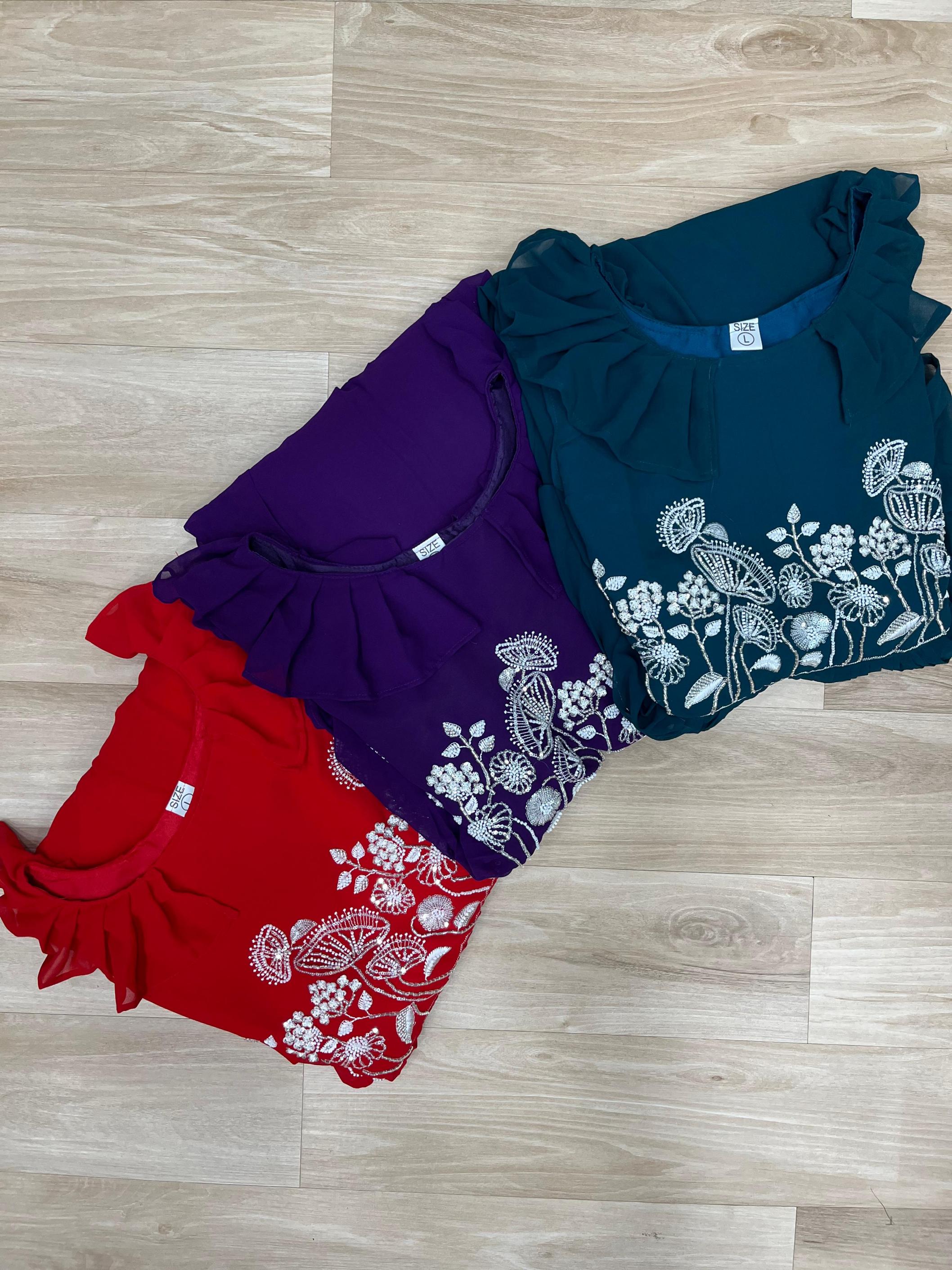 🛍 PREMIUM DESIGNER PEPLUM STYLE COLLECTIONS . 💃🏻 Code:- KA-1175 👉🏻 GOWN :- 👇 👉🏻 COLOUR :- 3 ( Red, Rama, Purple ) 👉🏻 PACKAGE CONTAIN :- Gown 👉🏻 WEIGHT :- 0.700 KG 👉🏻 BEST RATE:- 850/-INR |