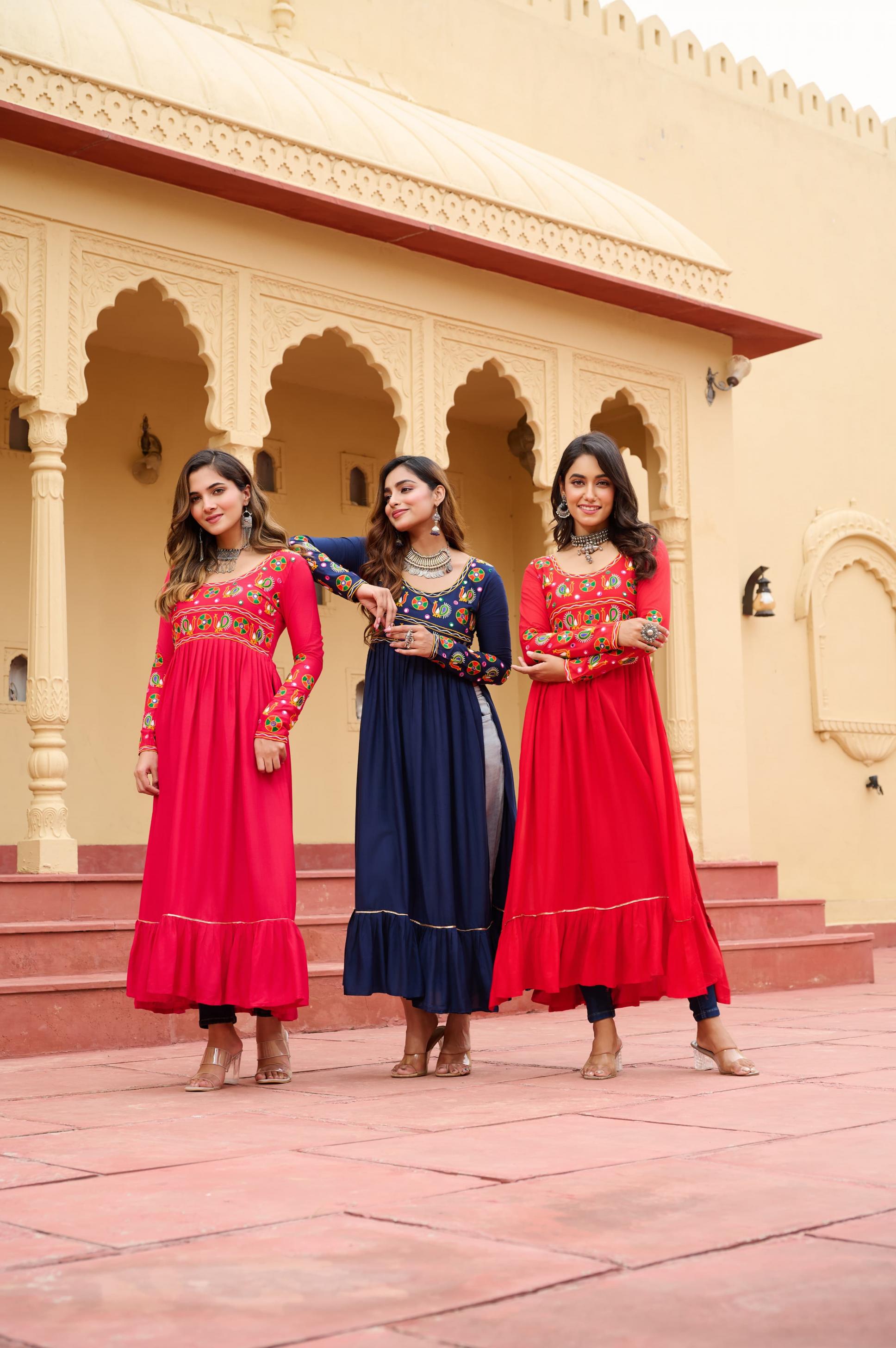 ka 1200 rayon kutchi gamthi work navratri readymade stylish kurti for girls