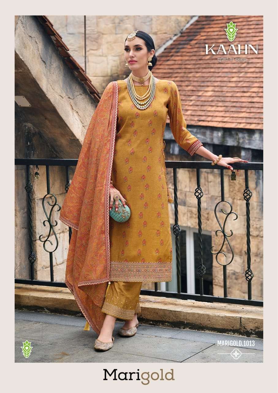 kaahn present marigold amazing festive wear salwar kameez material