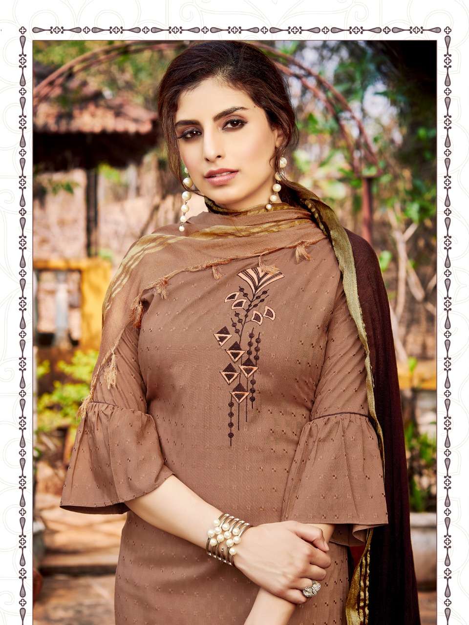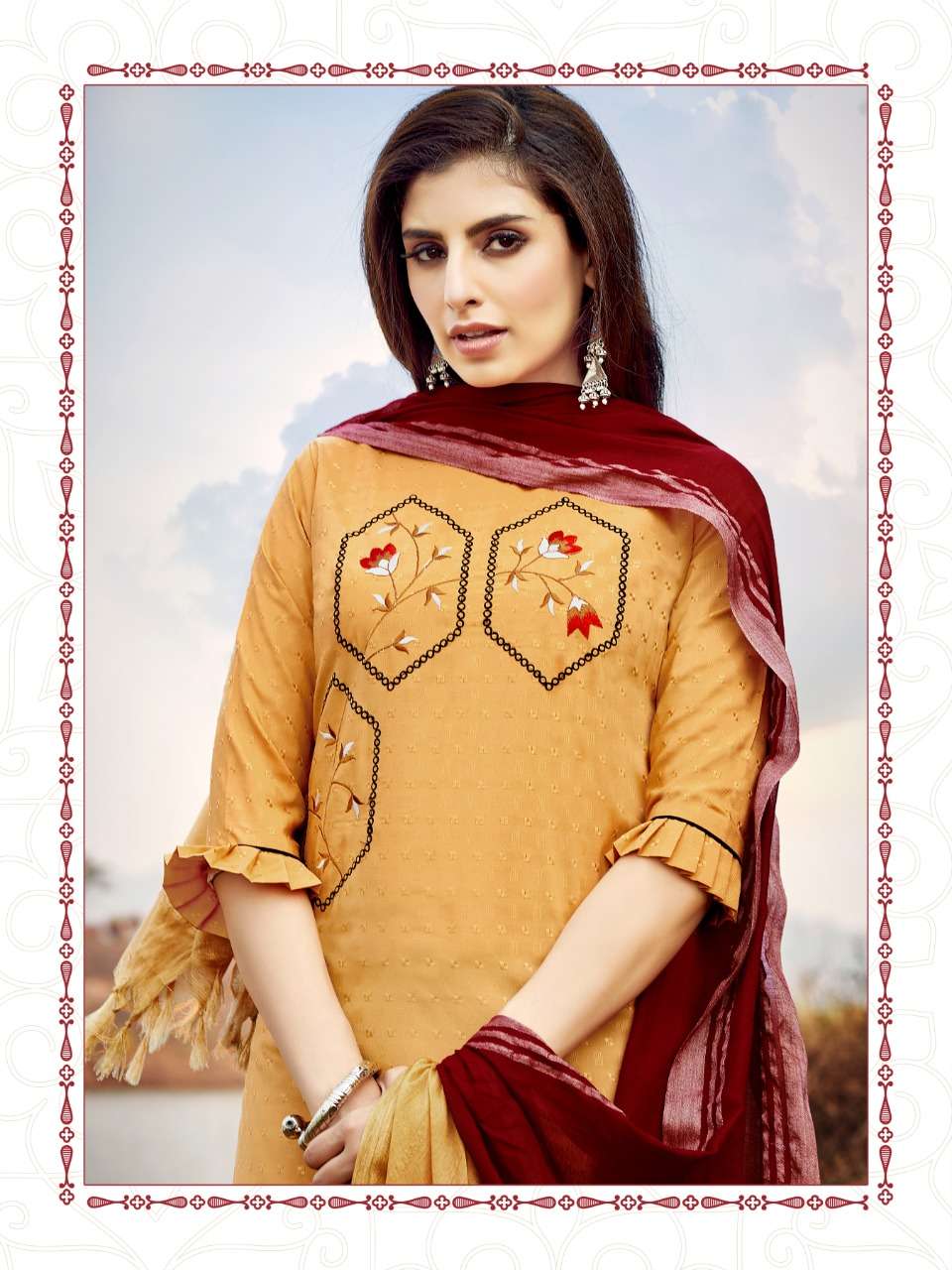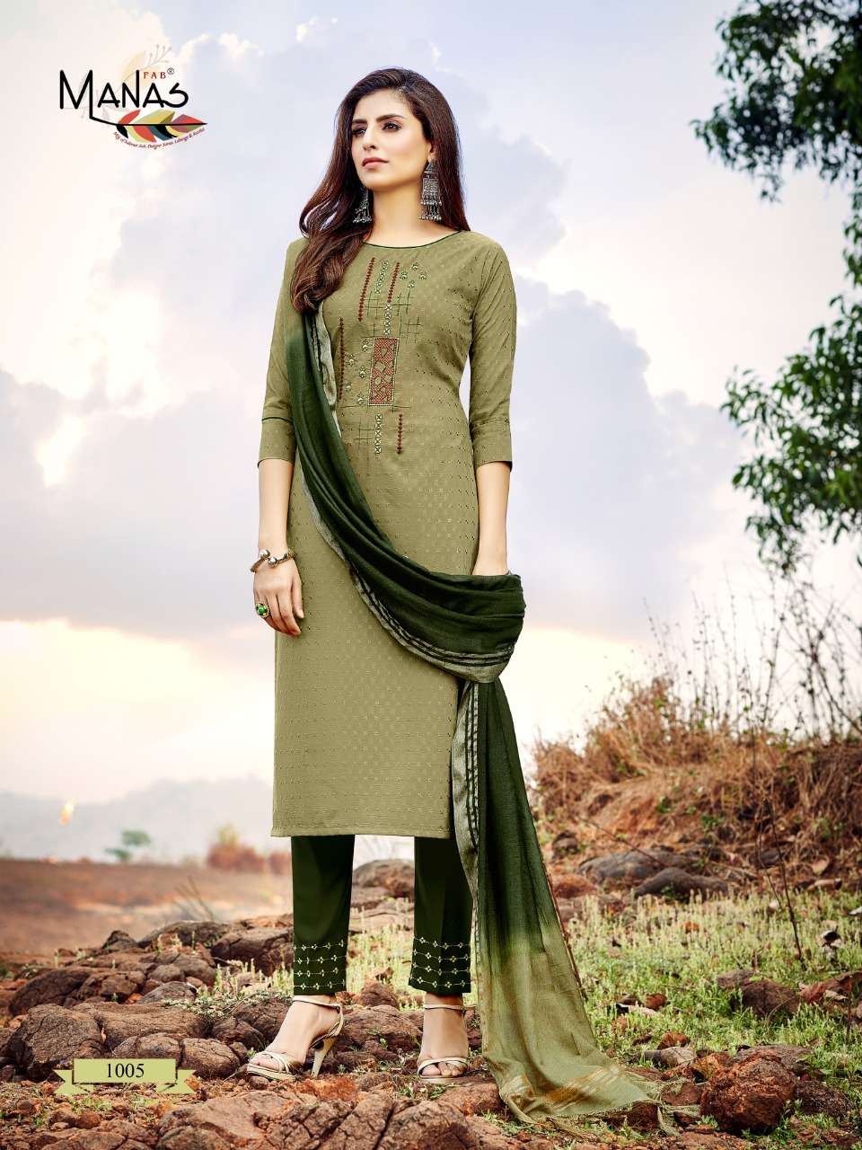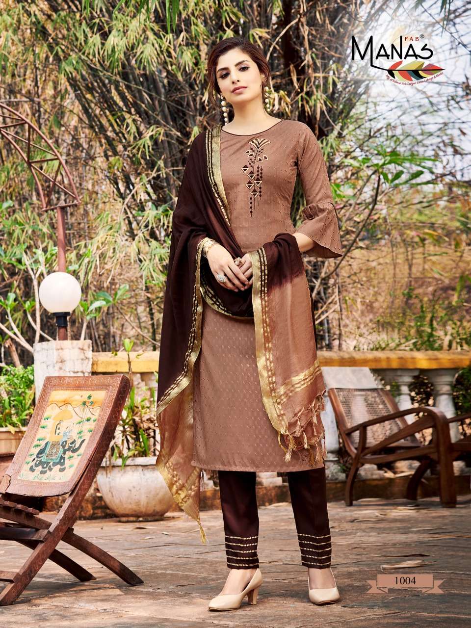 Brand Name : Manas Design : 6 👗Top Fabric : Fancy Dobby weaving with Embroidery work 👖Bottom Fabric: 14 kg rayon with embroidery work Duptta: Fancy fabric 🧶🧵Work: Embroidery Work 👗Top Length: 46+ Size : M(38), L(40), XL(42), XXL(44) 3XL(46) Rate : 775/-Pis + 5% GST Dispatch Date: 2 To 3 Day |