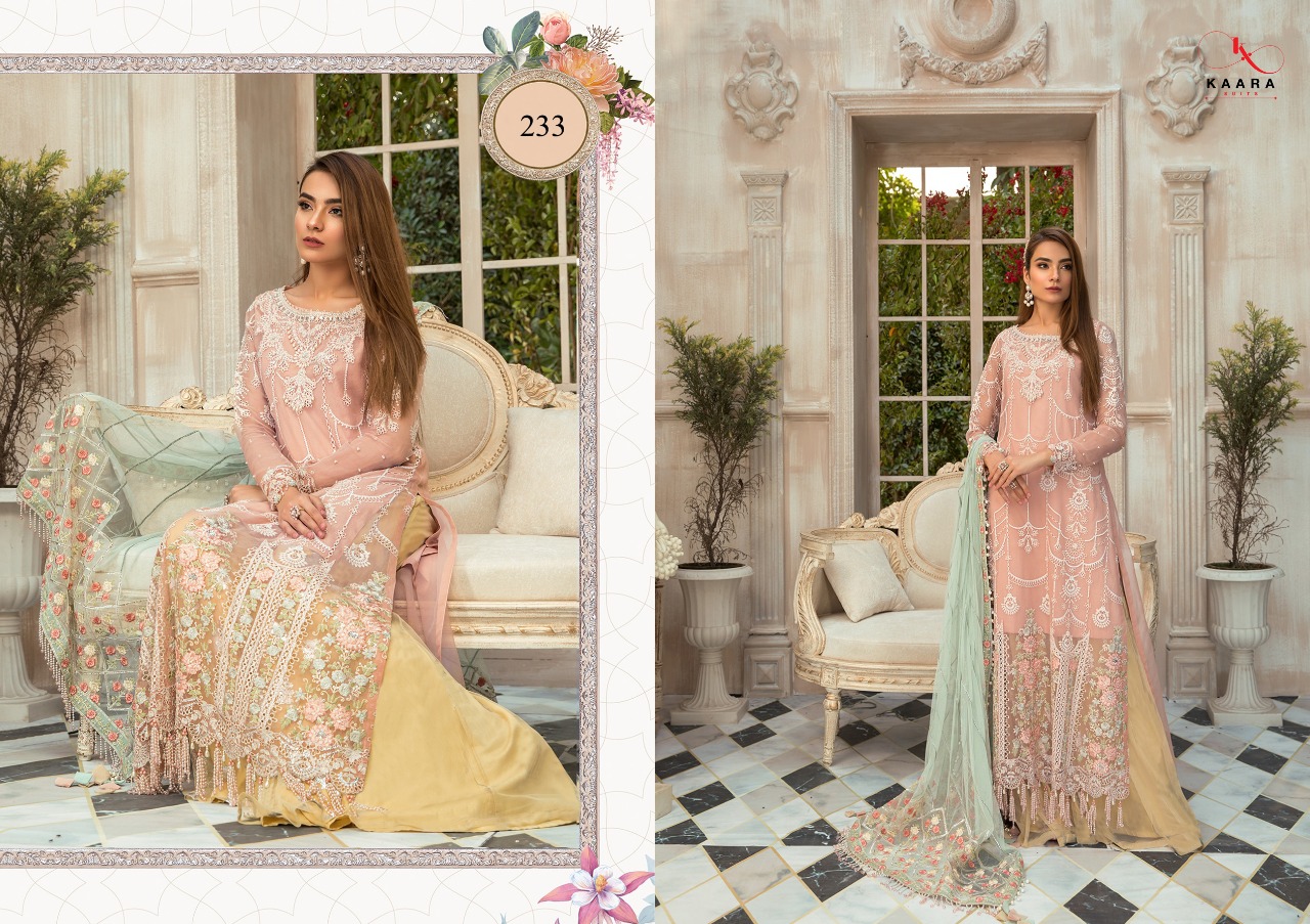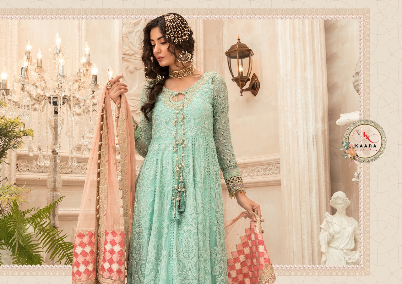 Kaara Suits Mbroidered M Print Georgette With Net Pakistani Suit Concept Limited Stock