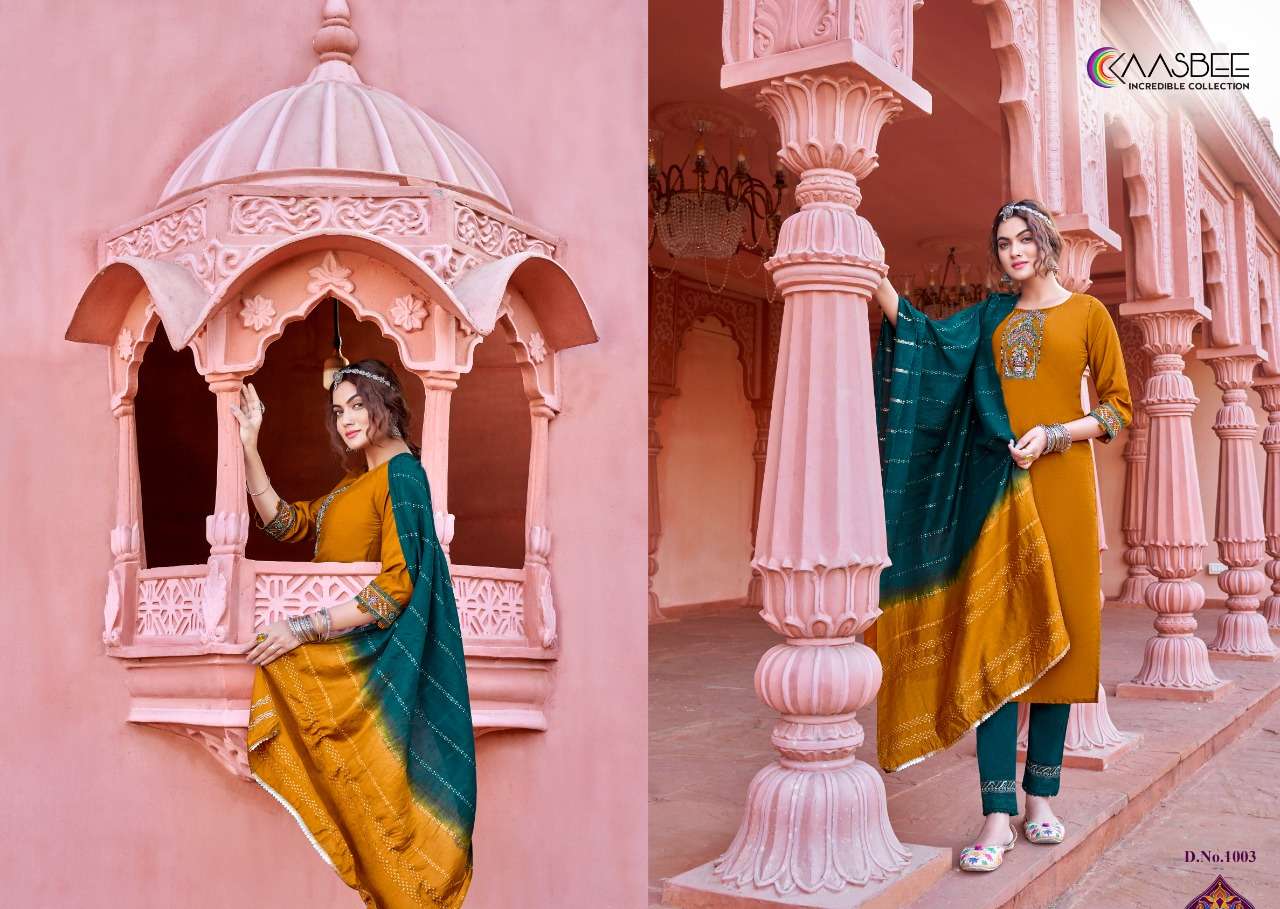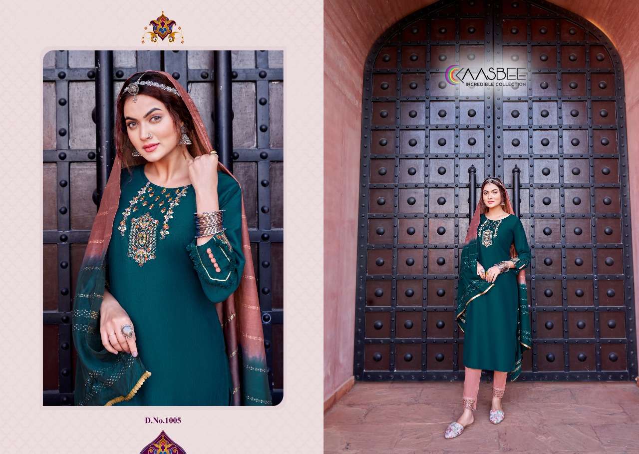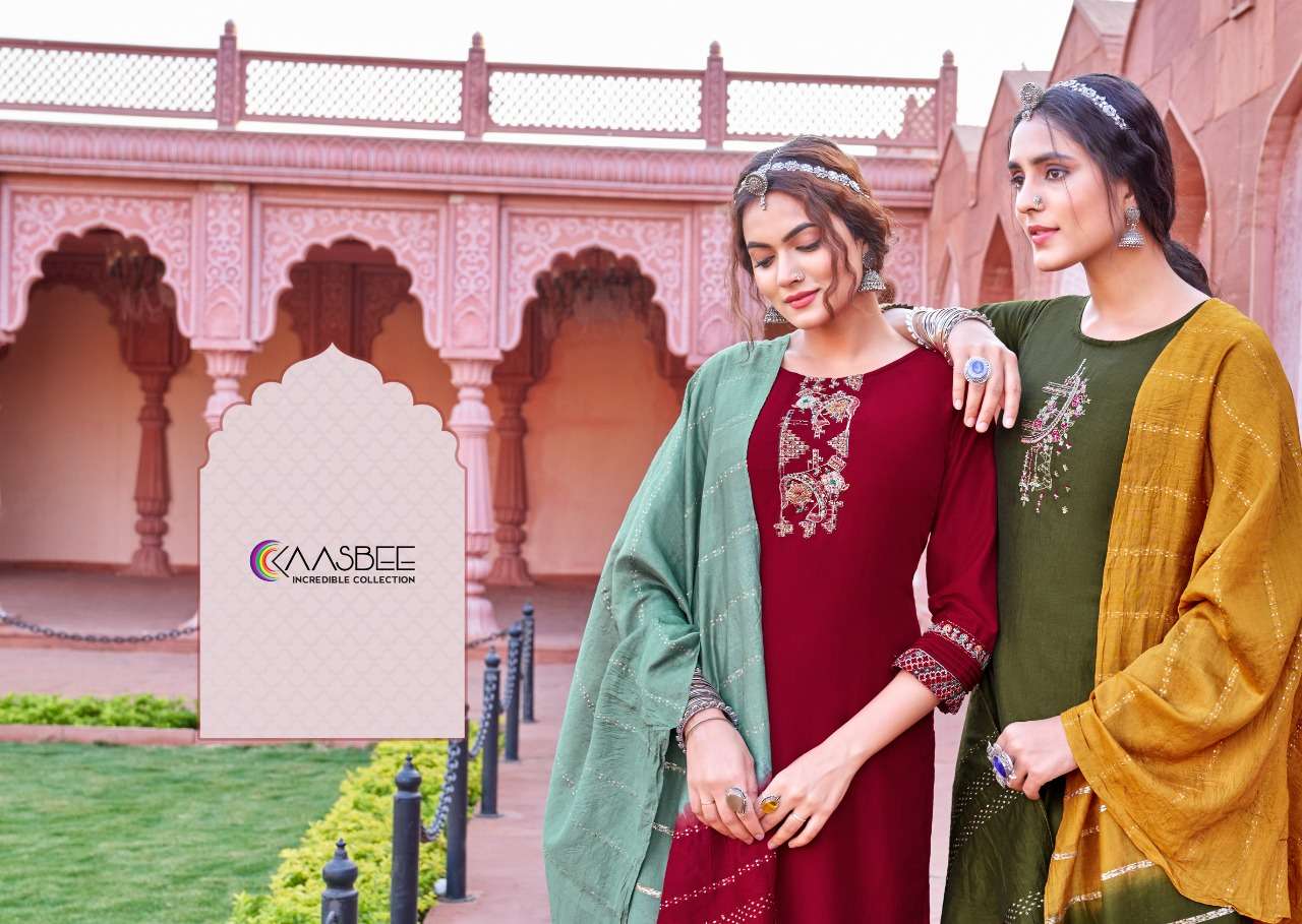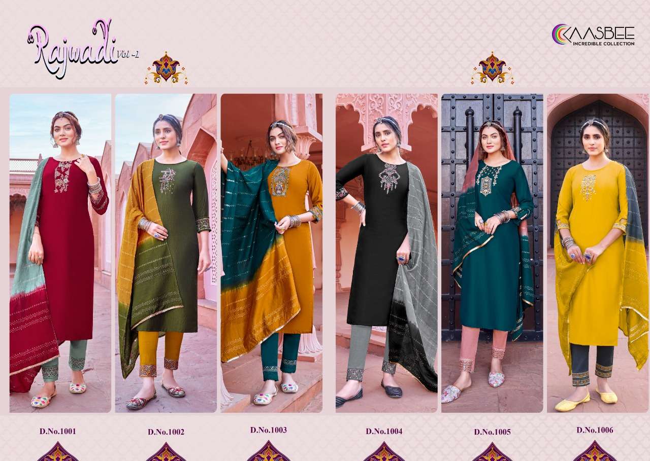 kaasbee rajwadi vol 1 designer work kurti with pant and dupatta