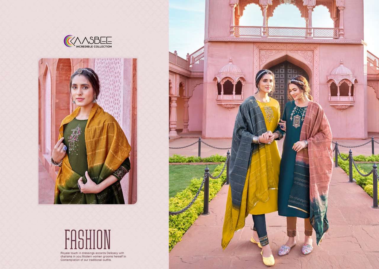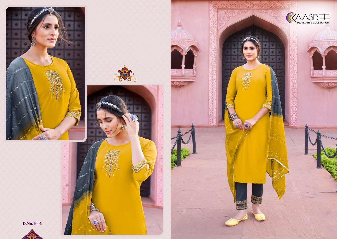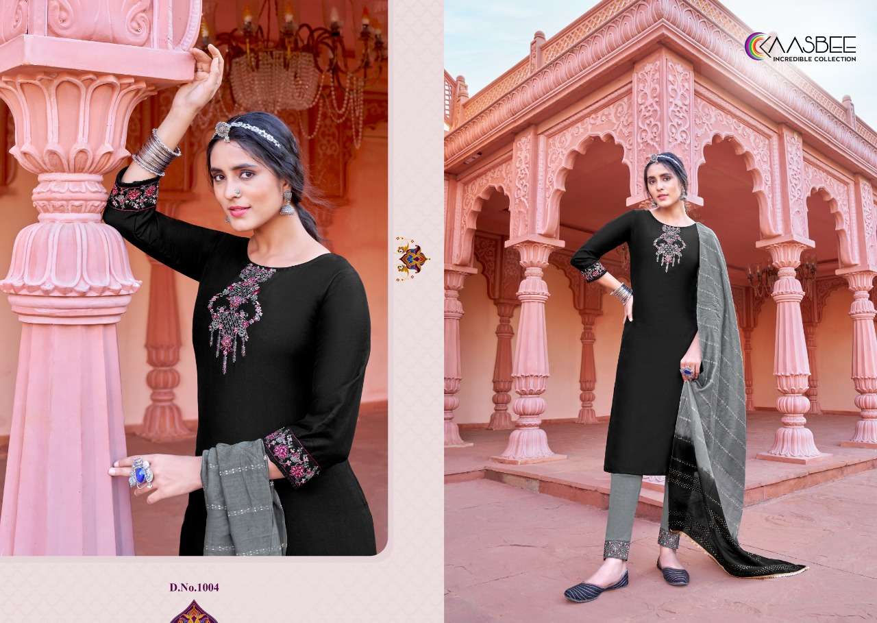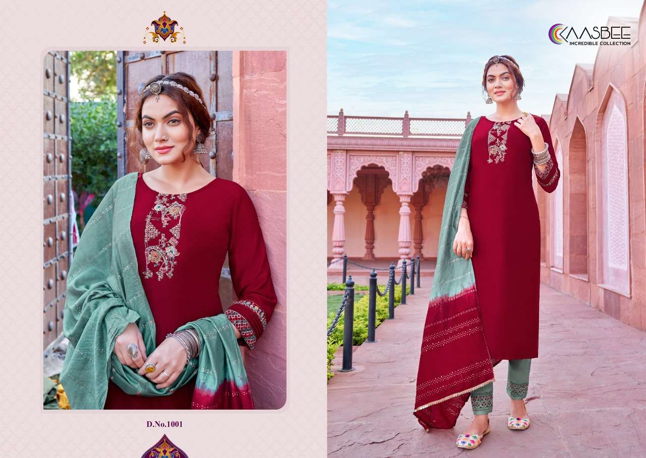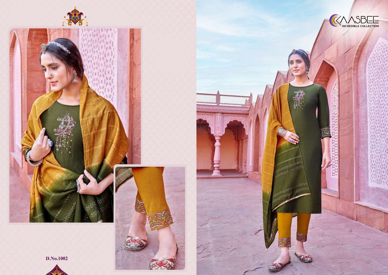 kaasbee rajwadi vol 1 designer work kurti with pant and dupatta