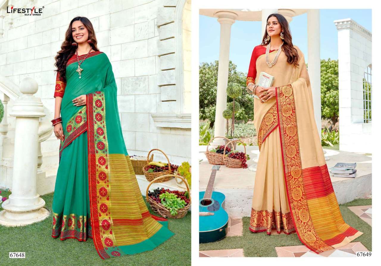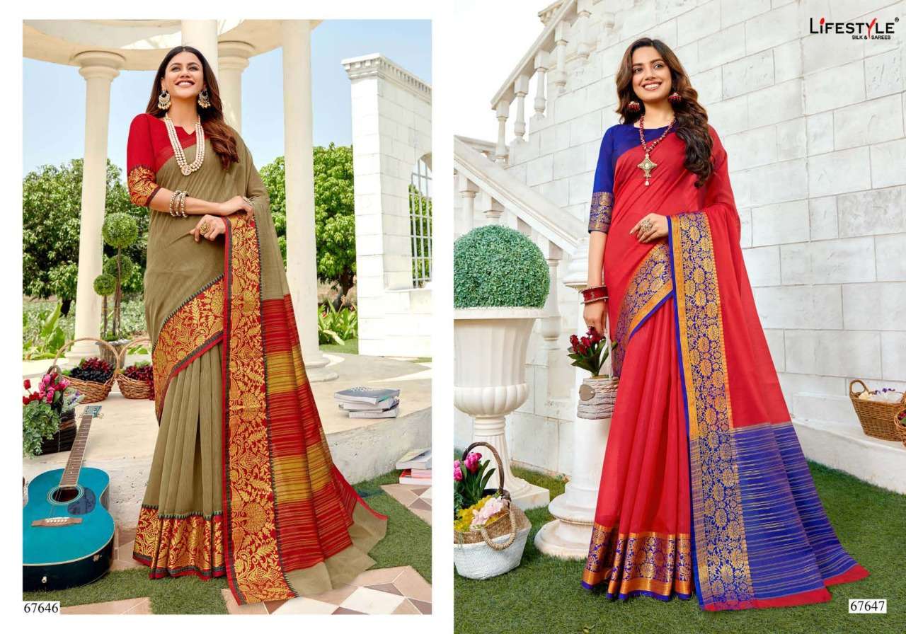 Lifestyle Saree Presents Latest Collection Launched on 14-08-2021. Presenting Beautiful collection of 12 PCS with Unstitched .