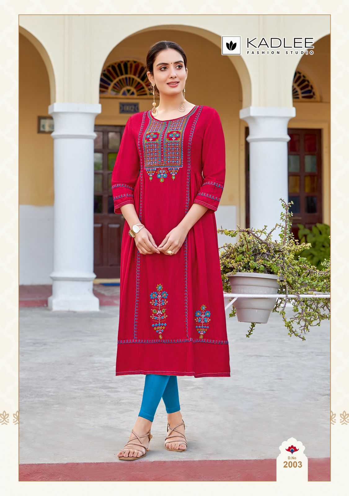kadlee present anshika regular use embroidered & handwork full stitch kurti