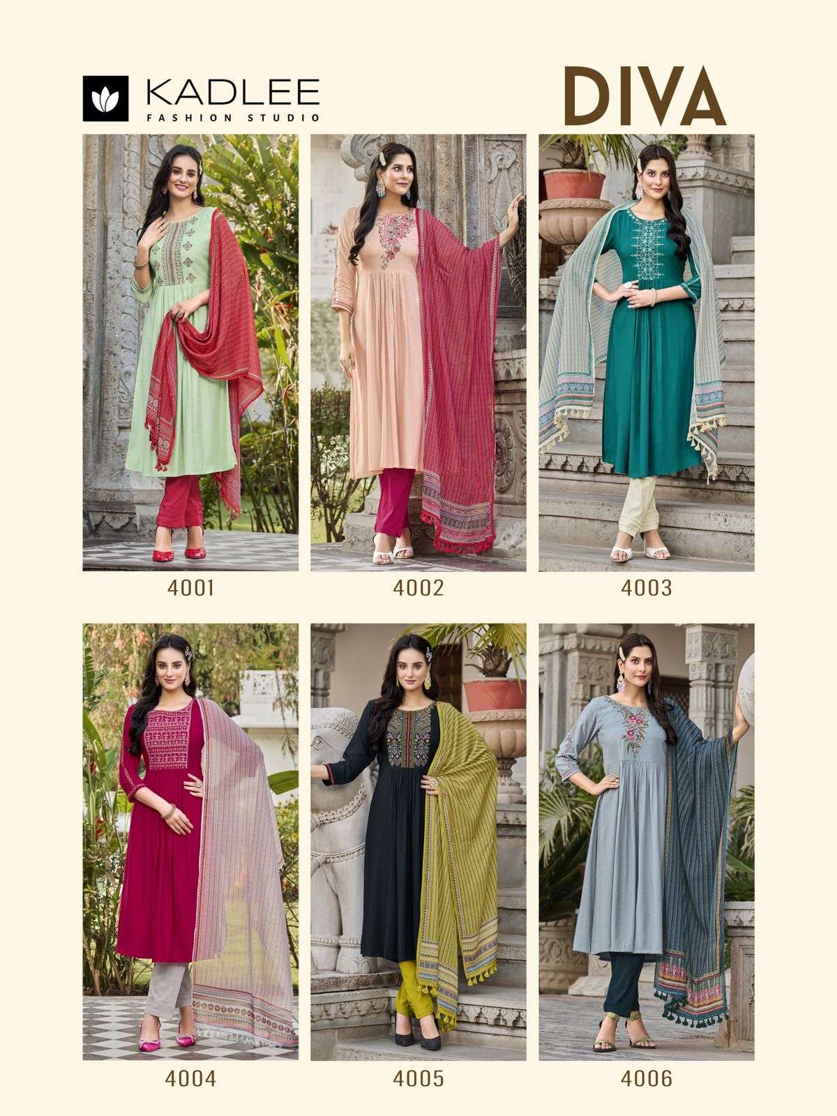 kadlee present diva amazing designer kurti with pant and digital dupatta