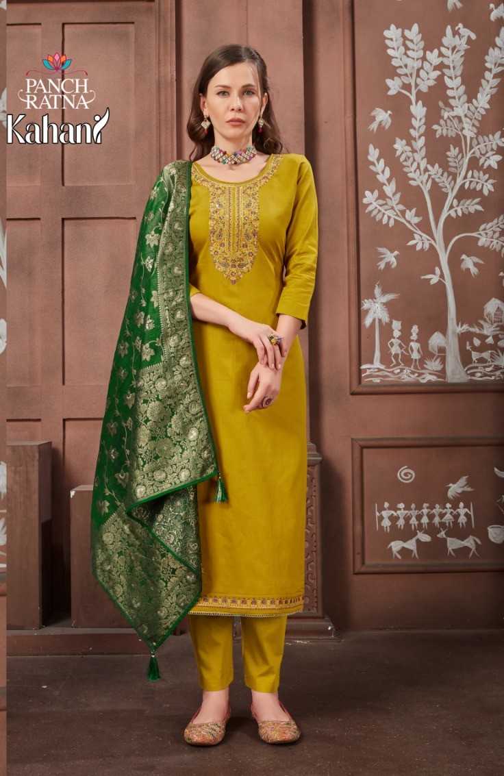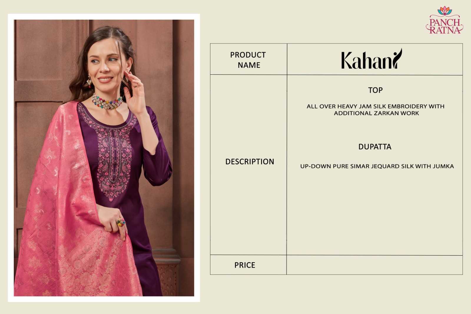kahani by panch ratna fancy jam silk embroidery work 3pcs dress material