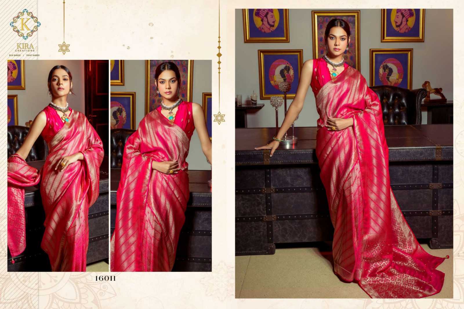 kahira silk 16000 to 16011 by kira creation viscose satin weaving designer saree