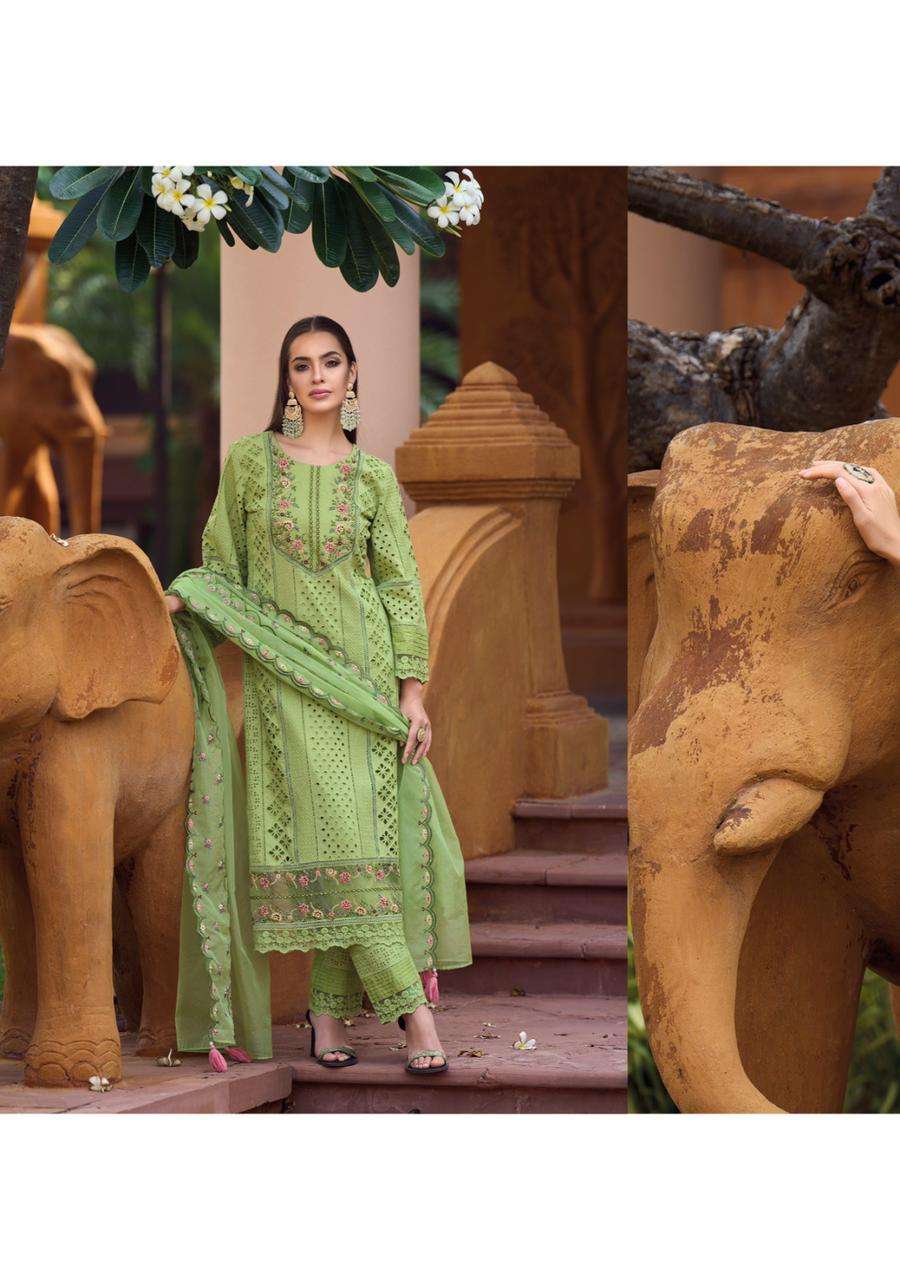 PREMIUM FANCY SUMMERWEAR PAKISTANI COLLECTION 👗* SAFARANAMA *👗 💯Quality .... 🔺BOTTOM PANT : - * PURE COTTON + laces Laces * 🔺DUPPTA :- * PURE ORGENJA SCALPING WORK + fancy * Fully stiched Kurtis & pant & Duppta 🔺*3psc * Size: *M L, XL, 2XL 3XL * * RATE : 1799₹/-* per pcs DNO:- 4 PSC |