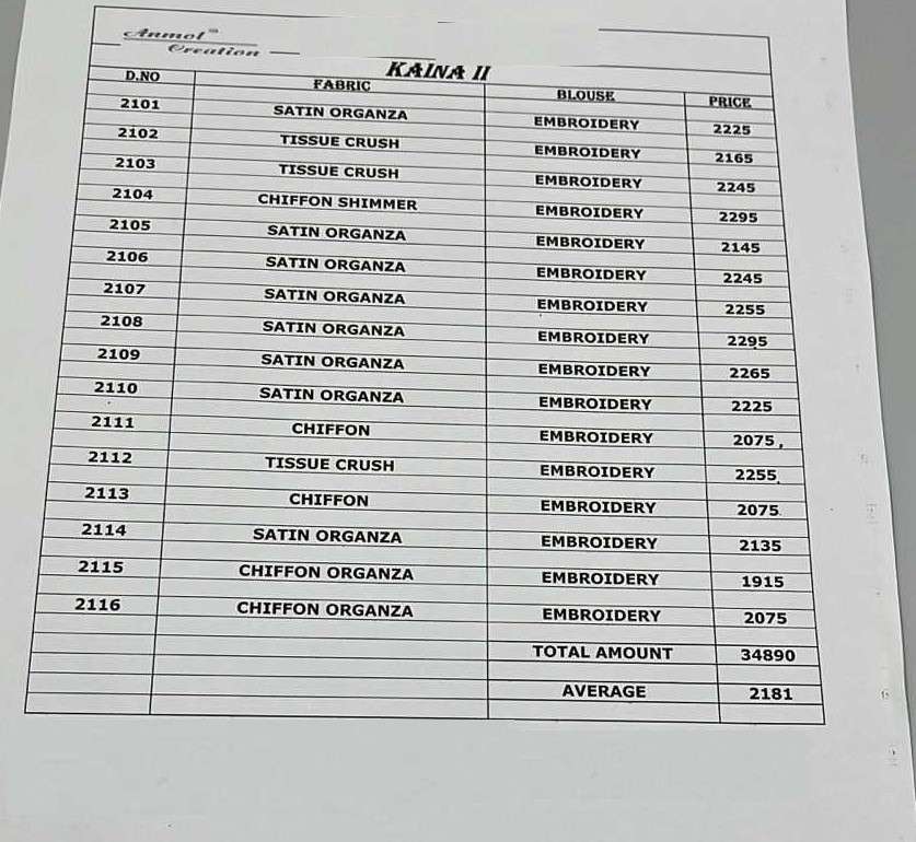 Brand - Anmol . KAINA VOL 2 2101-2116 series Fabric :- FANCY AVG Rate :- 2181 Set TO Set Delivery from today |