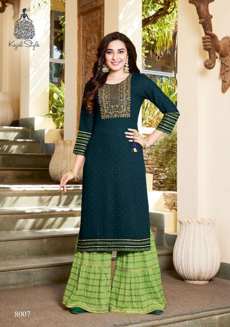 kajal fashion label vol 8 kurti with flair plazzo and sharara pattern