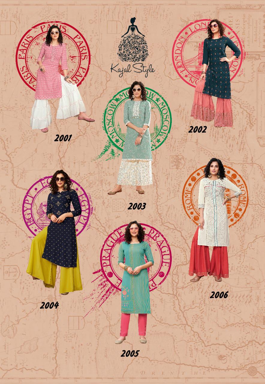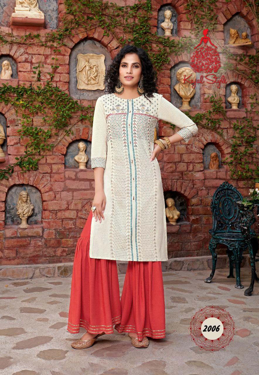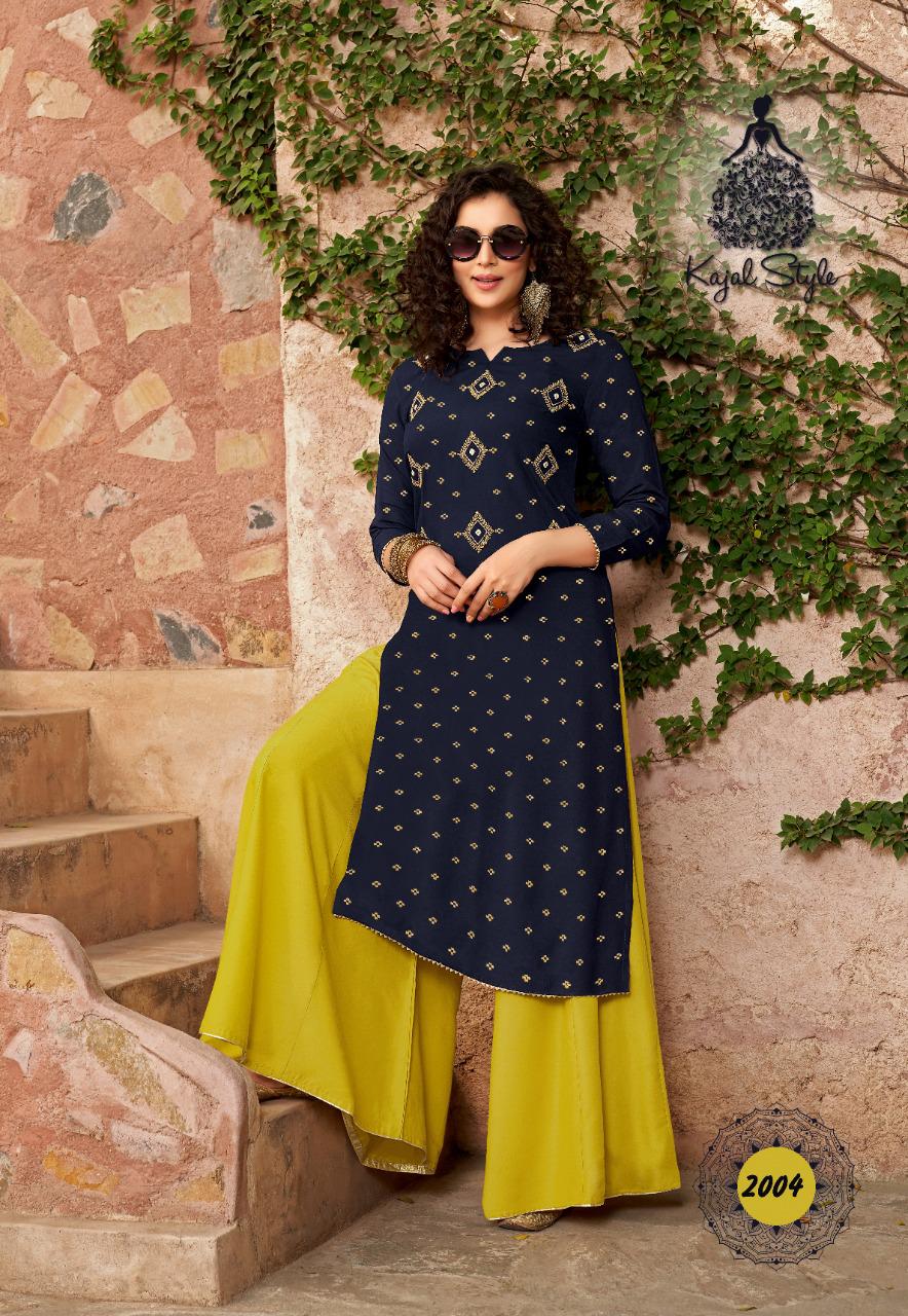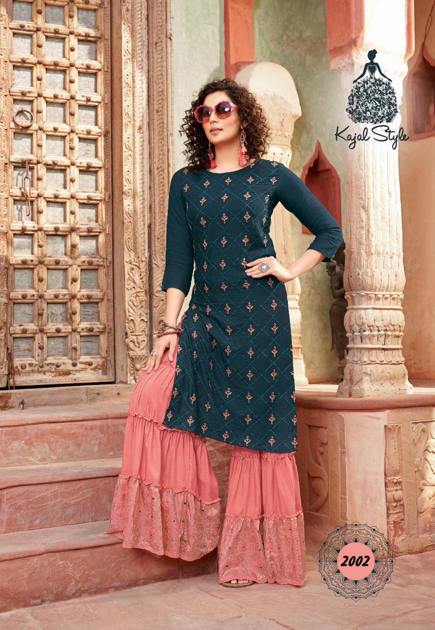 Kajal Style Fashion Galaxy Vol 2 Rayon Print Kurti With Sharara Plazzo And Pant Pair