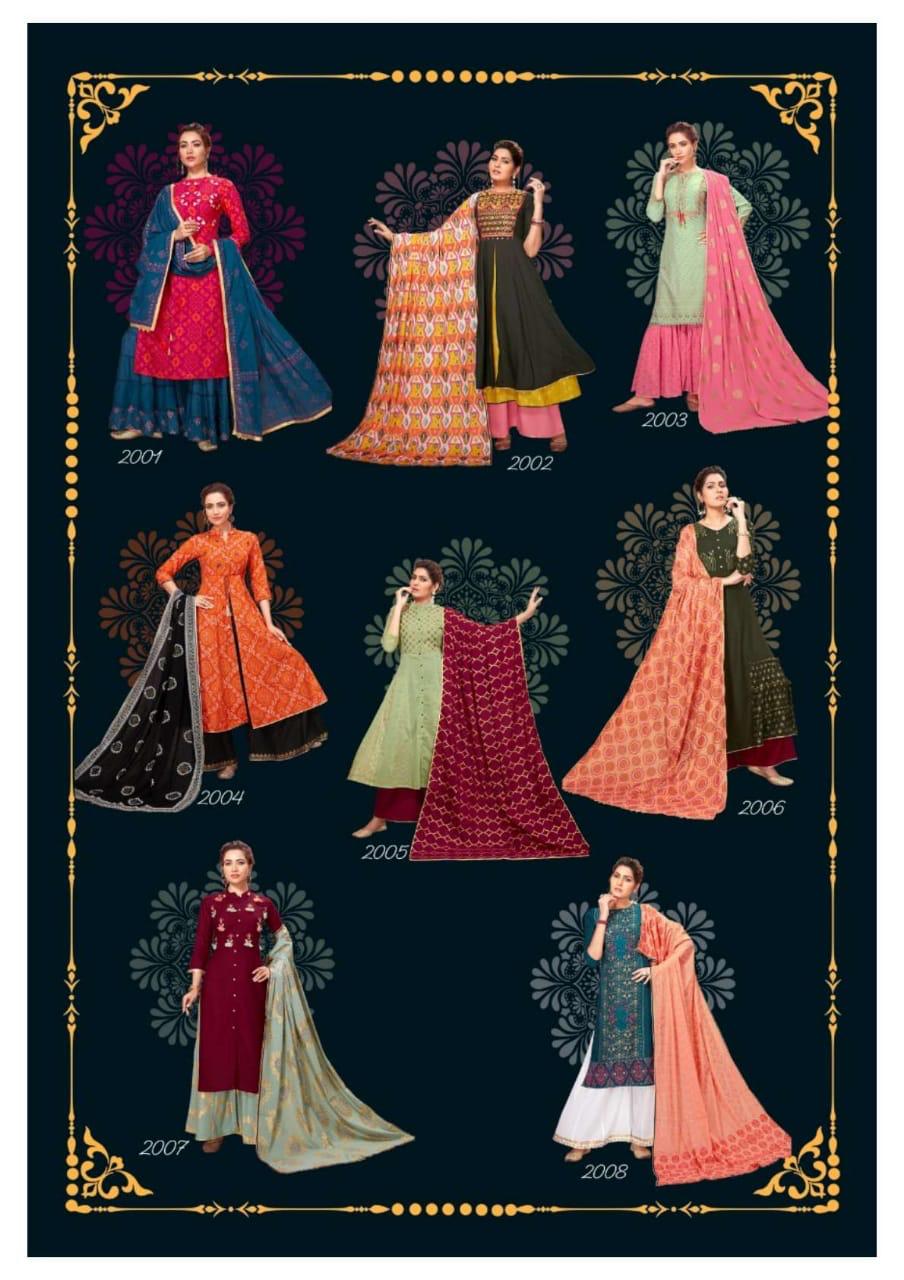 Kajal Style Gulzar Vol 2 Rayon Kurti Plazzo With Dupatta Collection