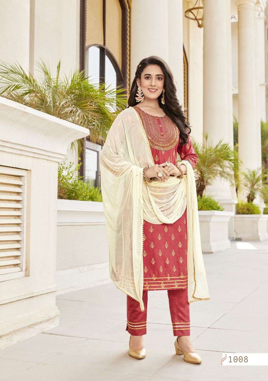 Most Awaited Designer dupatta collection with kurti Pent set . Its filled With Glitz & Glamour ...! 📣 📣 📣 Catalogue name: ✨Details 🎗Size :: L-XL-XXL ☣Designs - 8️⃣ Rate : 8️⃣9️⃣9️⃣ + GST |