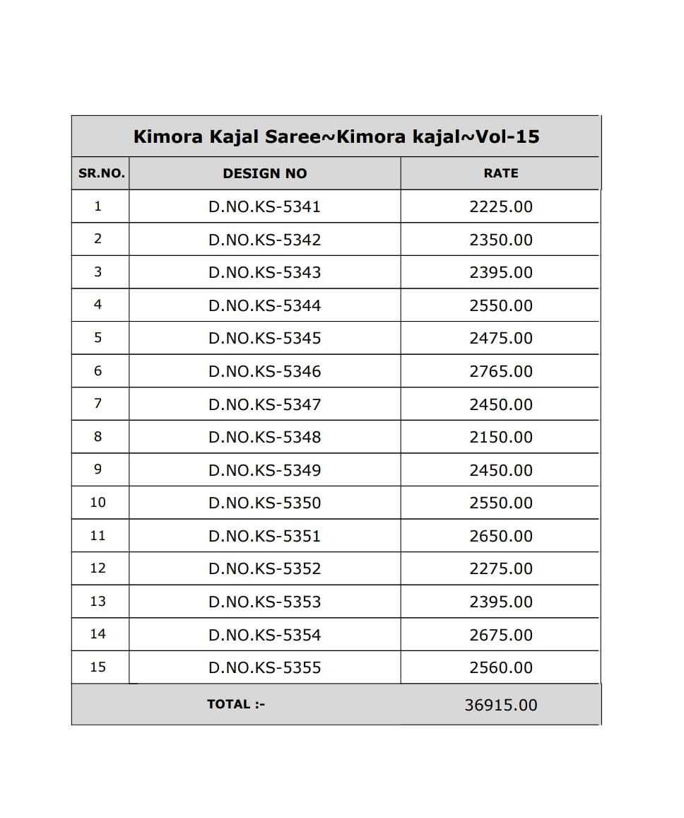 kajal vol 15 5341 to 5355 by kimora latest party wear saree for women