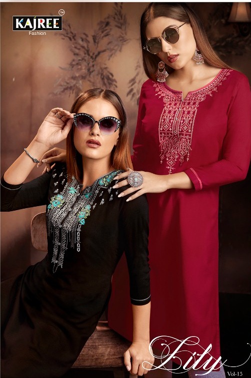 Kajree Launch Lily Vol 15 Rayon Embroidery Work Daily Wear Kurti