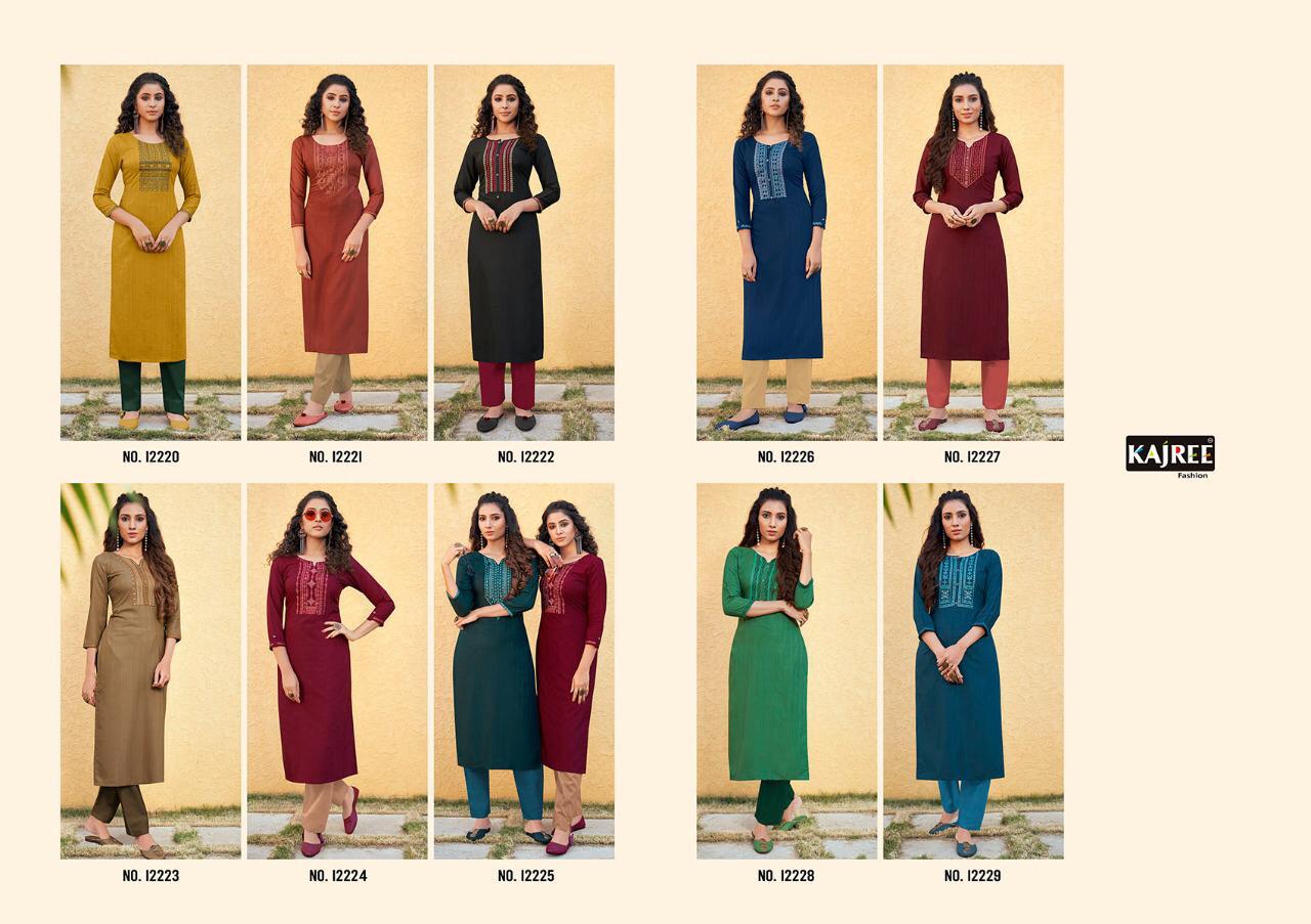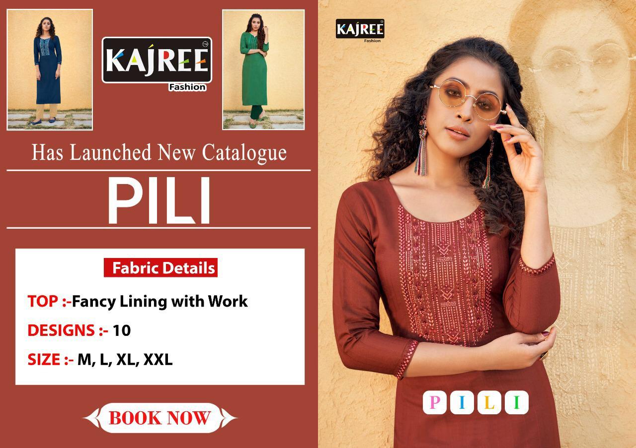 Kajree Pili By Kalaroop Fancy Lining With Work Designer Kurtis