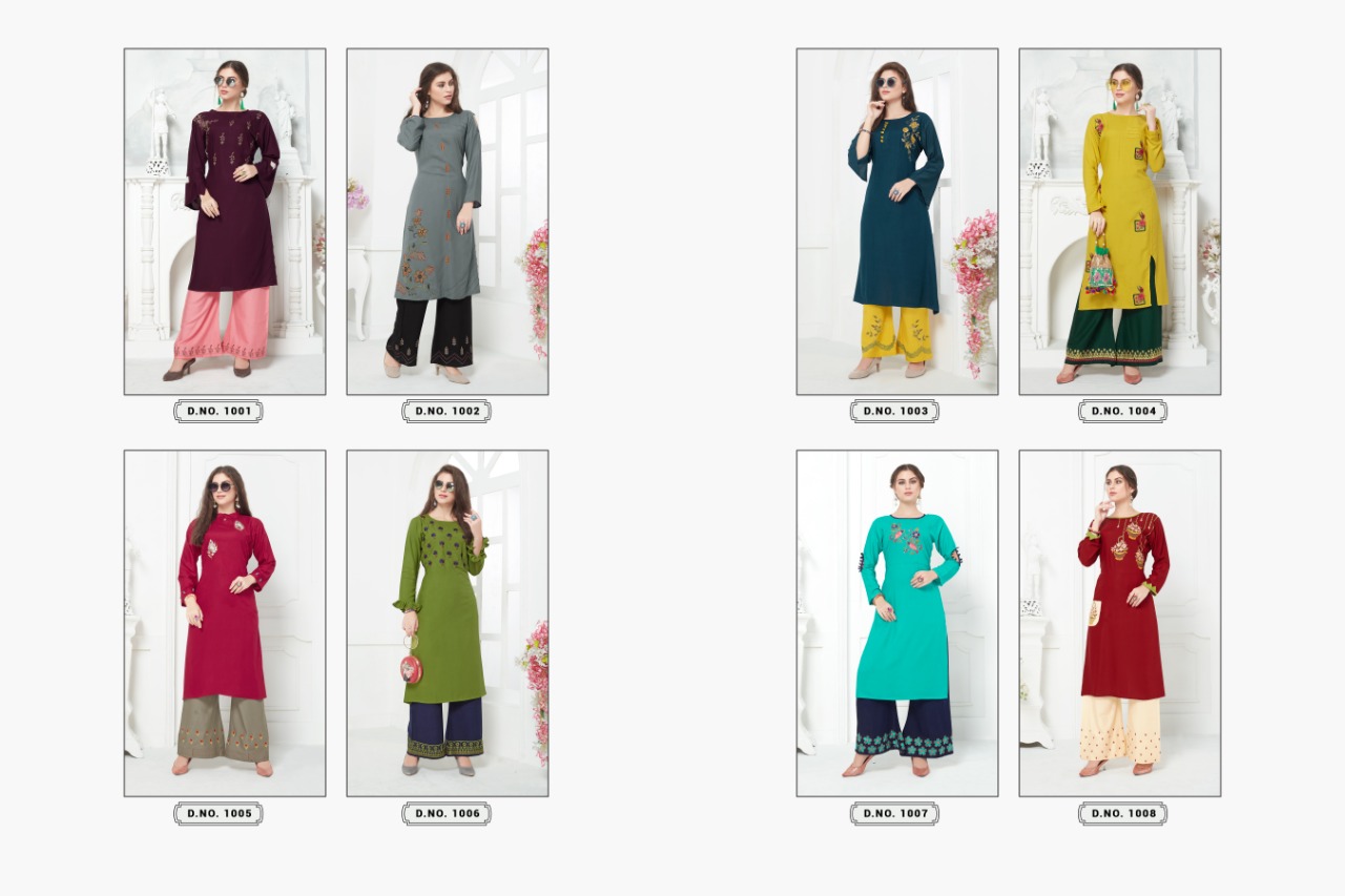 kajri style(volono trendz) has lunched Today new launching our brand kajri style NOOR VOL.5 Catlog name :- Noor vol.5 Fabric deatils..... Different color diffrent Desgine Top :- 14 kg heavy reyon with heavy work Plazo :- 14 kg heavy reyon with heavy work ◽Price :- 651/- gst extra ◼Designe:- 8pis full catlog ◼Size M,L,xl,xxl,xxxl Distpech date:- monday |