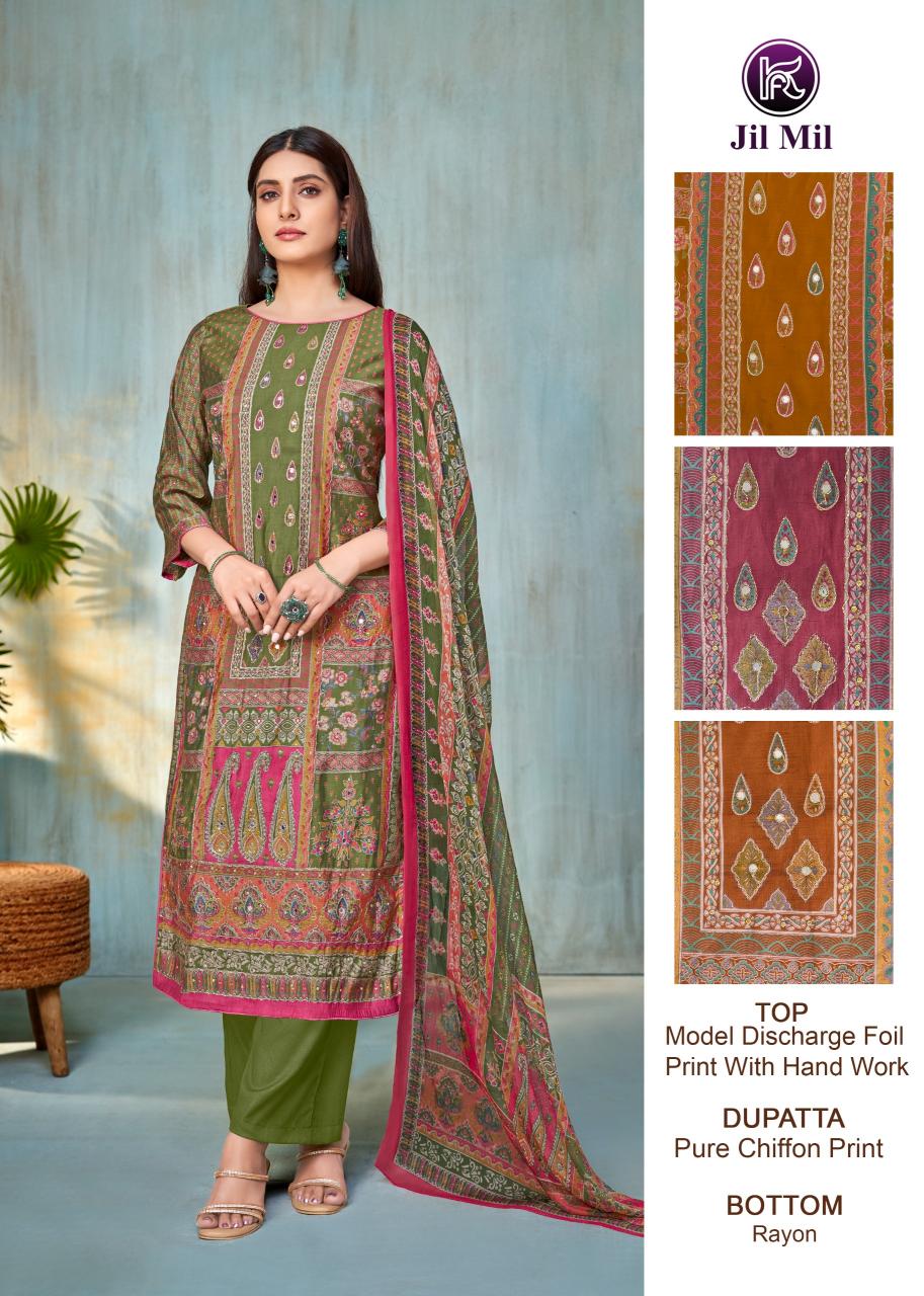 ♥️Once again coming with a new Catalogue ♥️ Launches its New Designer Catalogue : *JIL MIL1&2 🔸 Fabric Details 🔸 👖 *Bottom: Pure Rayon * 🏳️ Dup: Pure ciffon Digital Print and lace RATE:7️⃣8️⃣5️⃣+5️⃣%GST 4️⃣Pcs |