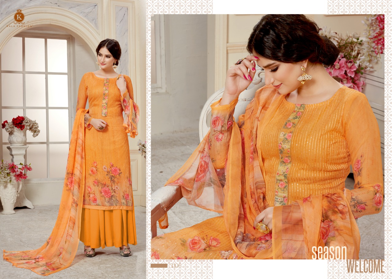 Kala Fashion Presents Latest Collection Launched on 23-09-2019. Presenting Beautiful collection of 6 PCS with Unstitched .