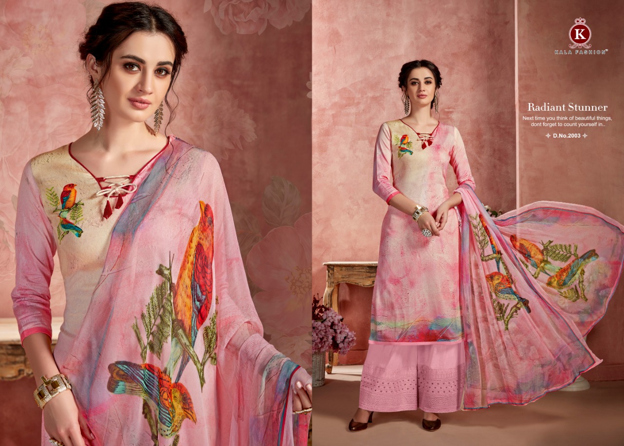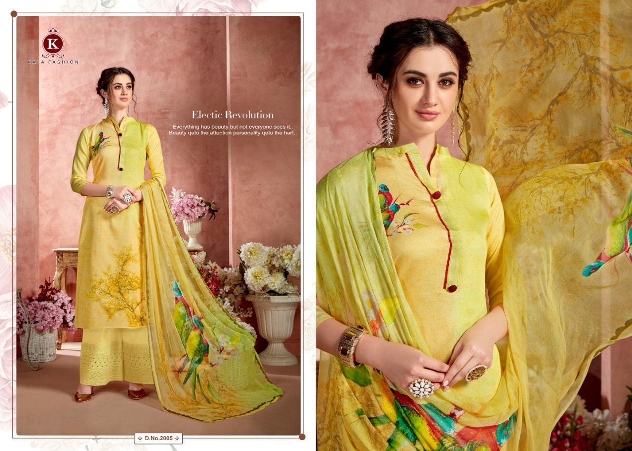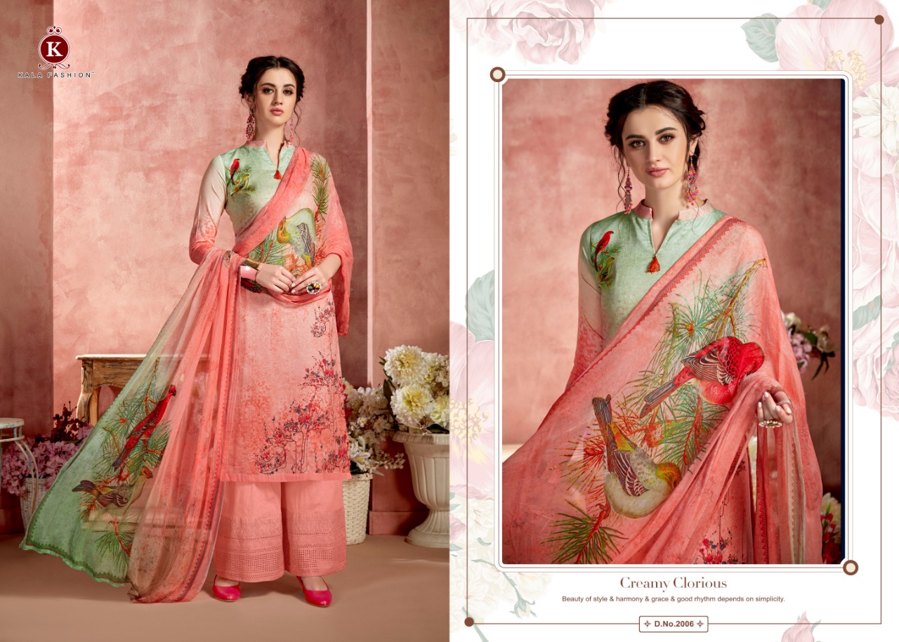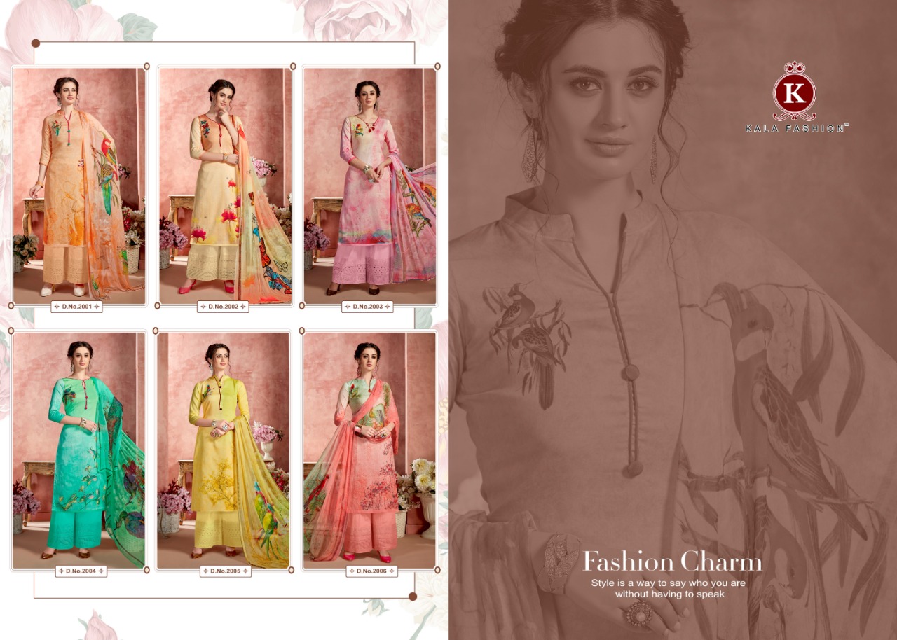 Kala Fashion Presents Latest Collection Launched on 06-09-2019. Presenting Beautiful collection of 6 PCS with Unstitched .