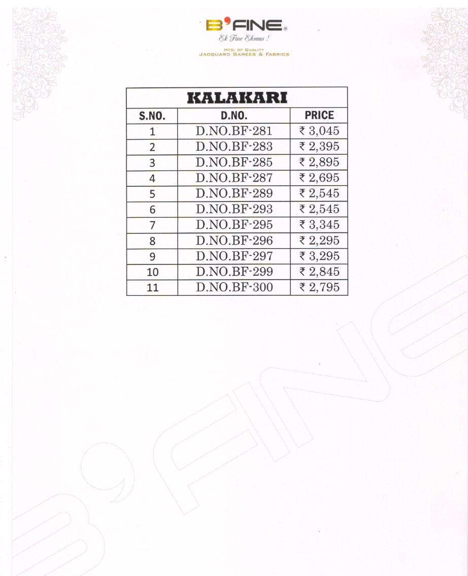 Brand. - B FINE . Catlog name - * KALAKARI* Fabric- Silk . ONLY FULL SET PRICE LIST HAS ATTACHED GST 5 Percent Extra. Delivery from today |