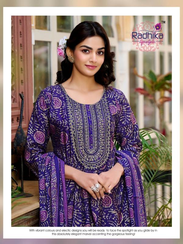 kalakii vol 2 by radhika lifestyle schimer print plus size readymade gown style 3pcs suits