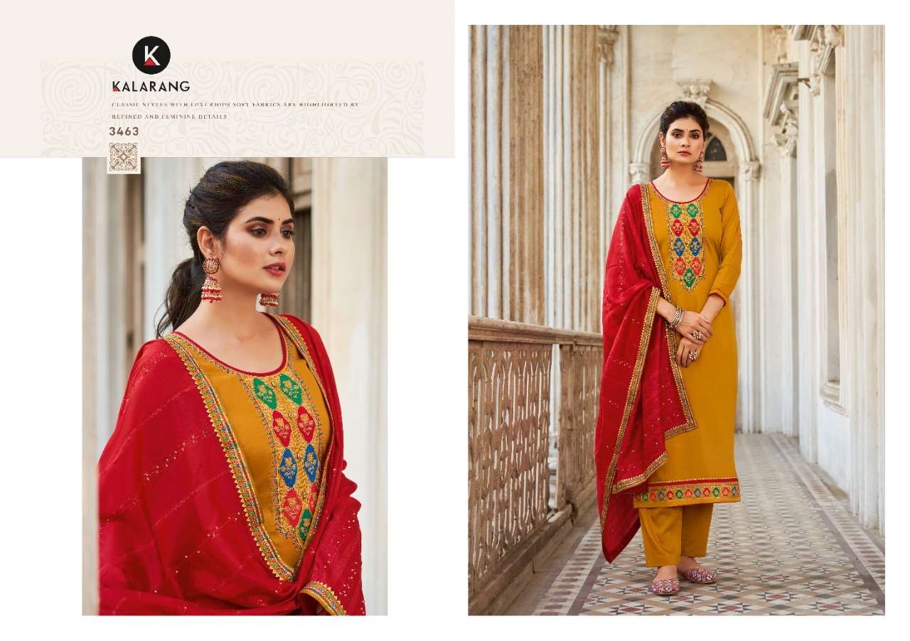 Kalarang Fashion Presents Latest Collection Launched on 09-08-2022. Presenting Beautiful collection of 4 PCS with Unstitched .