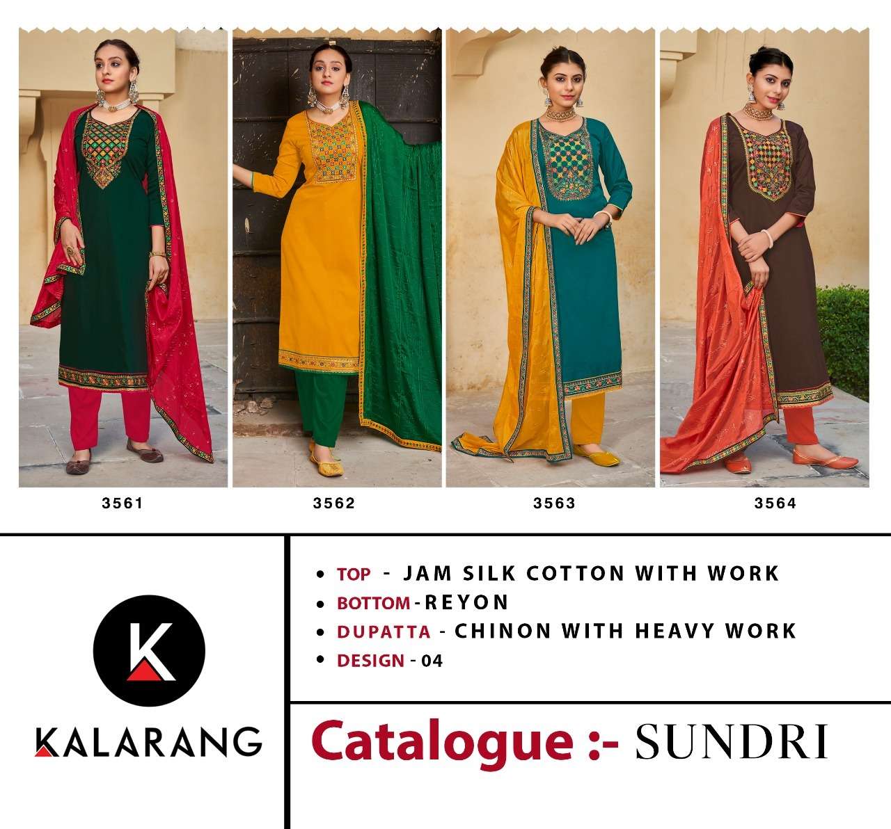 Kalarang Fashion Presents Latest Collection Launched on 23-05-2022. Presenting Beautiful collection of 4 PCS with Unstitched .
