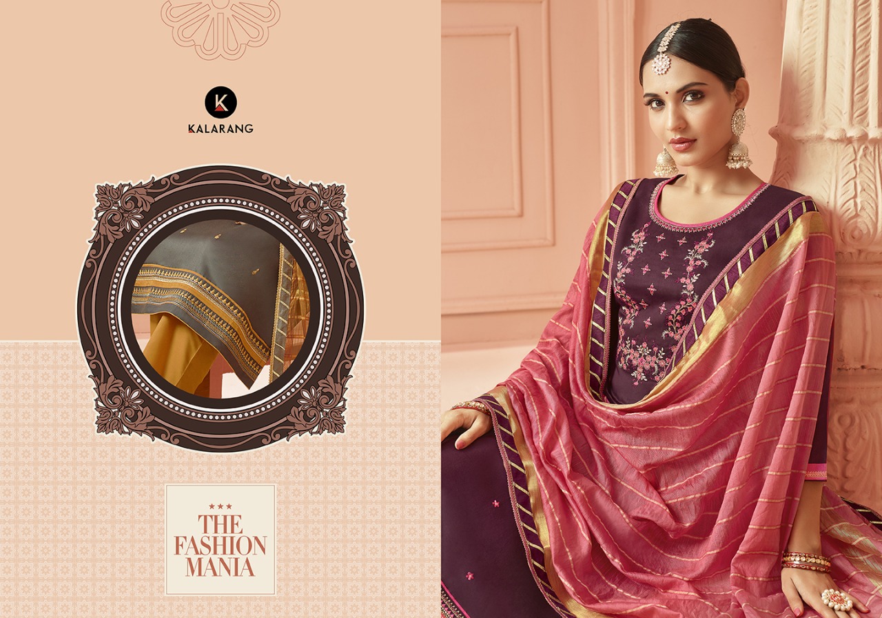 Kalarang Fashion Presents Latest Collection Launched on 23-01-2020. Presenting Beautiful collection of 4 PCS with Unstitched .