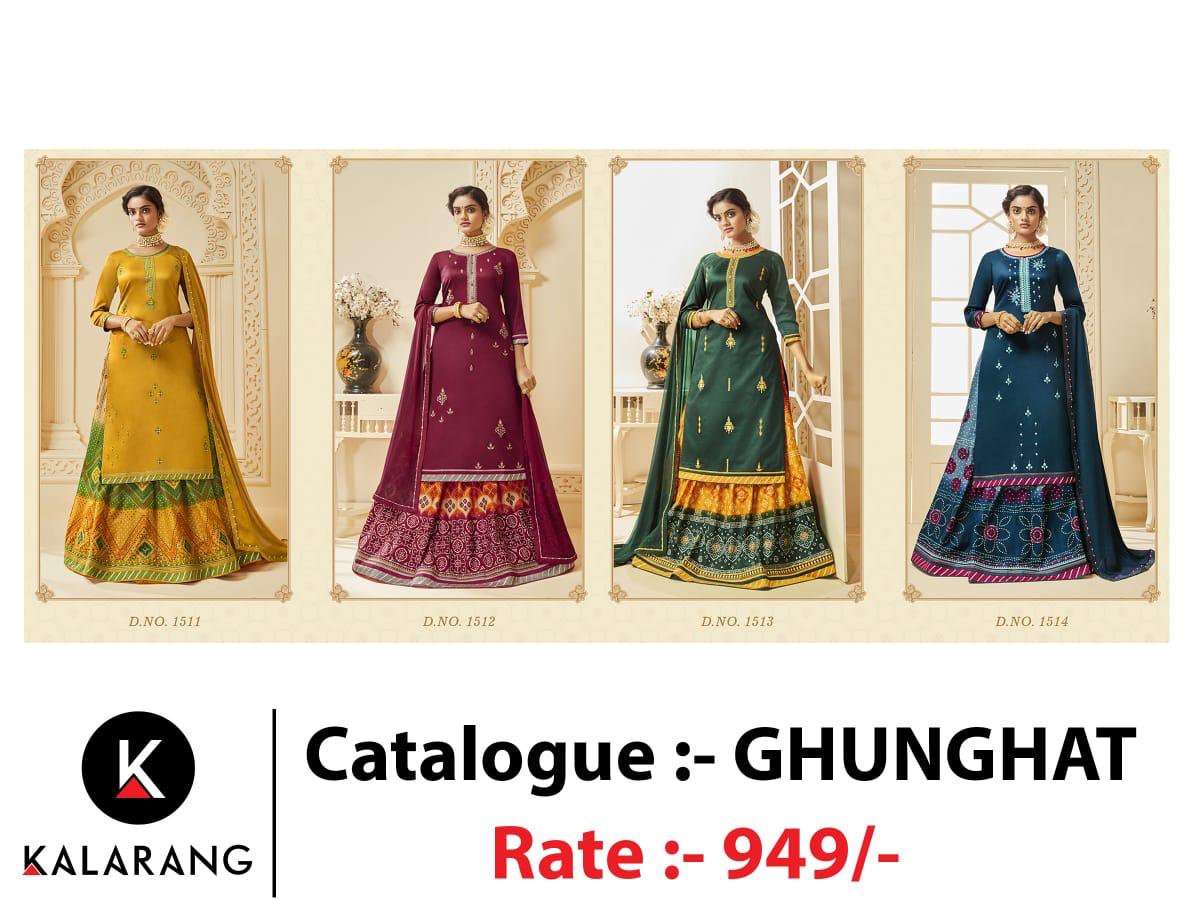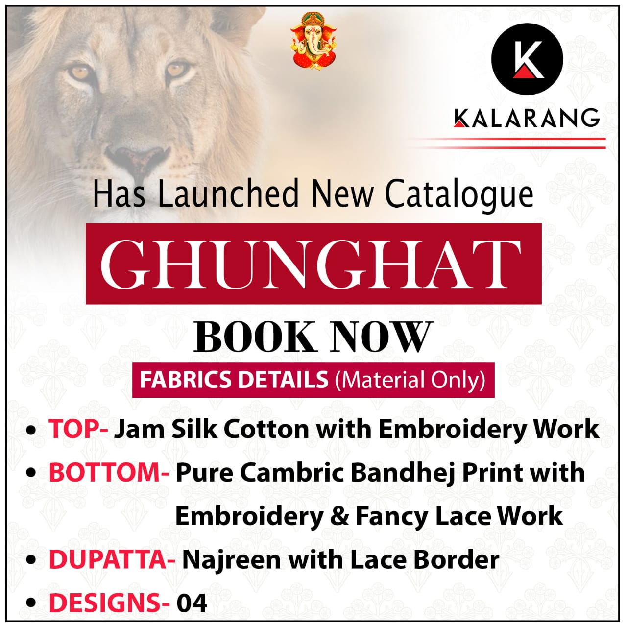 Kalarang Launch Ghunghat Jam Silk Cotton With Embroidery Work Lehenga Style Salwar Suit