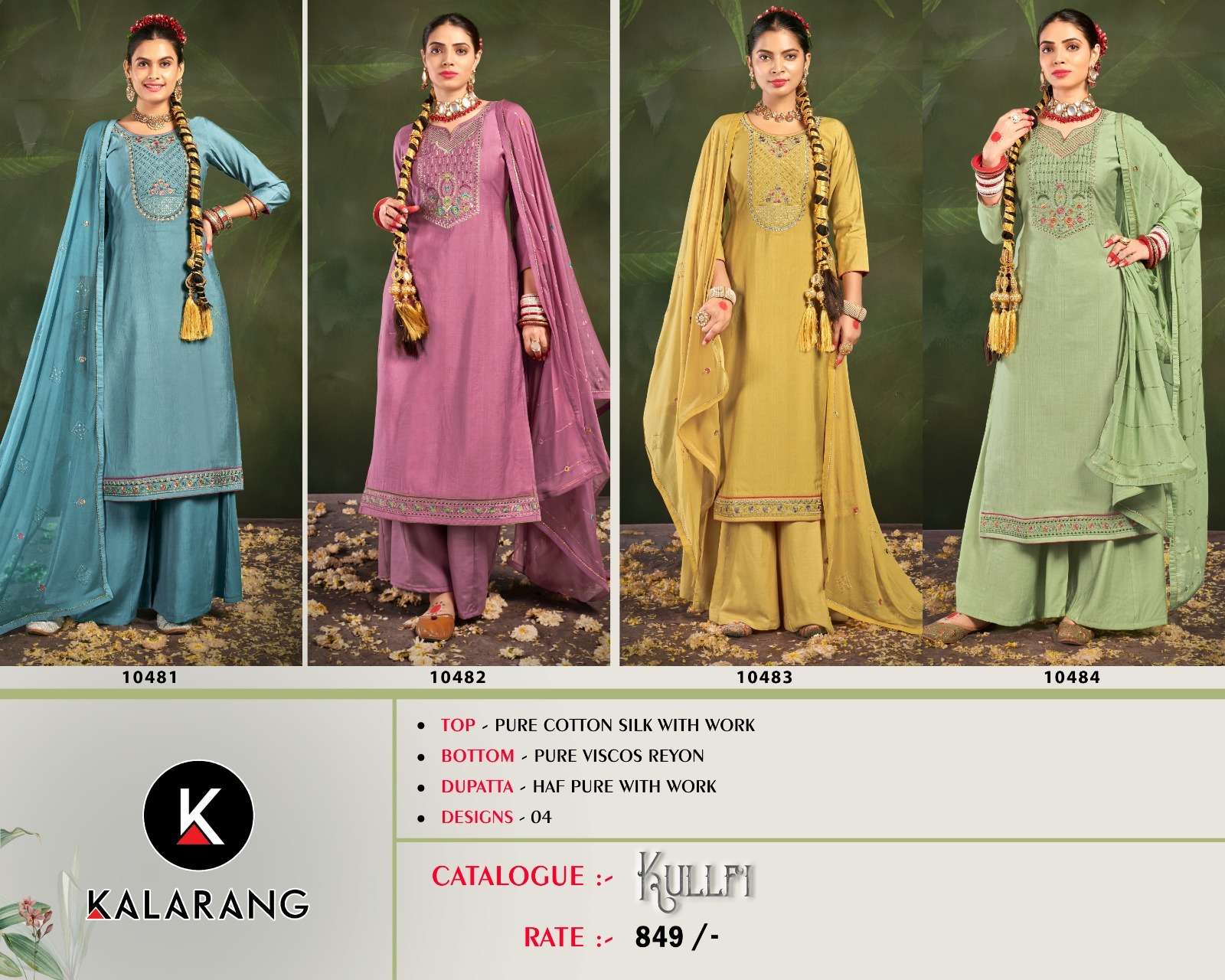 Kalarang Fashion Presents Latest Collection Launched on 01-04-2023. Presenting Beautiful collection of 4 PCS with Unstitched .