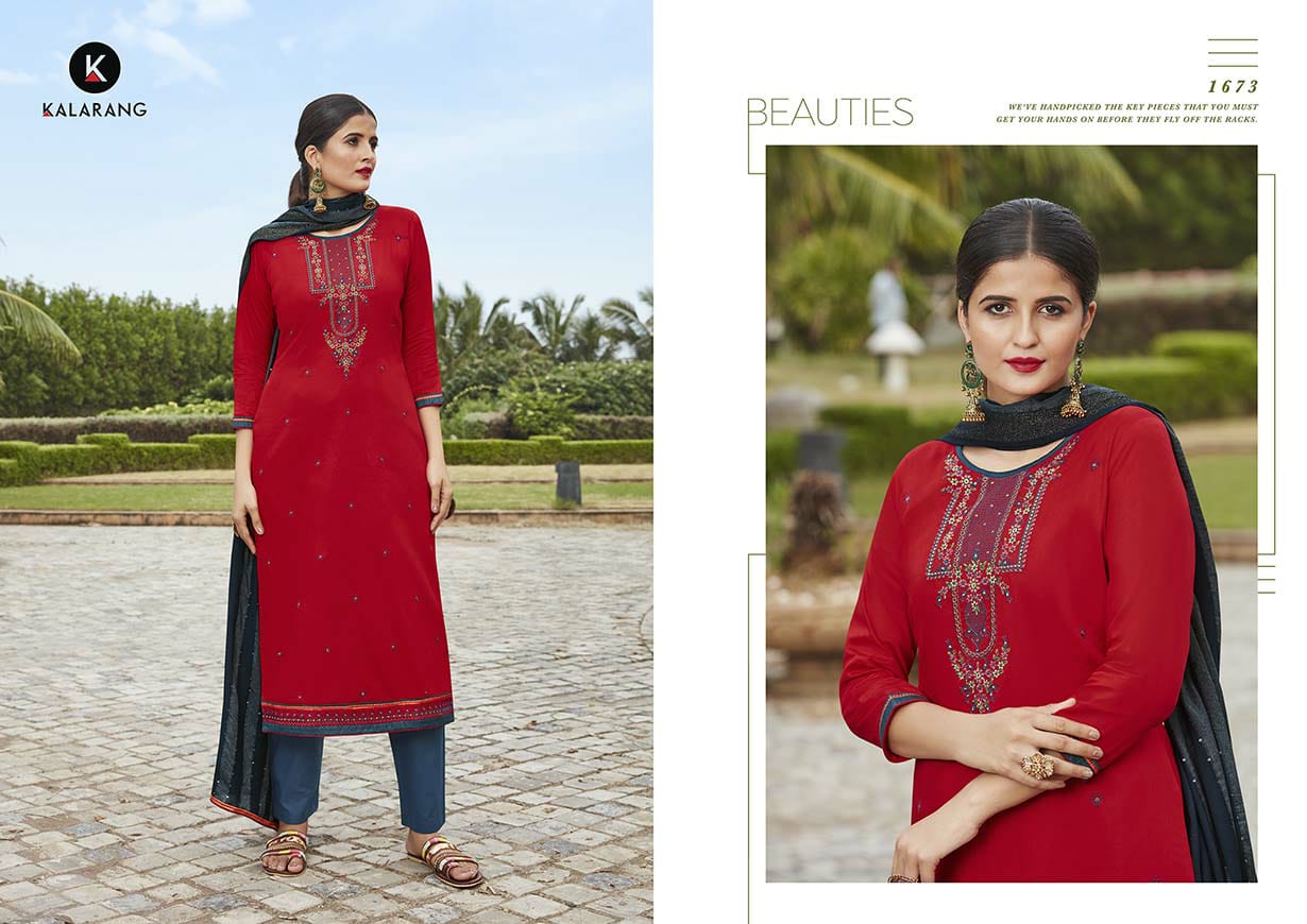 Kalarang Fashion Presents Latest Collection Launched on 21-09-2020. Presenting Beautiful collection of 4 PCS with Unstitched .