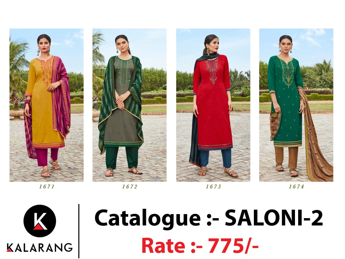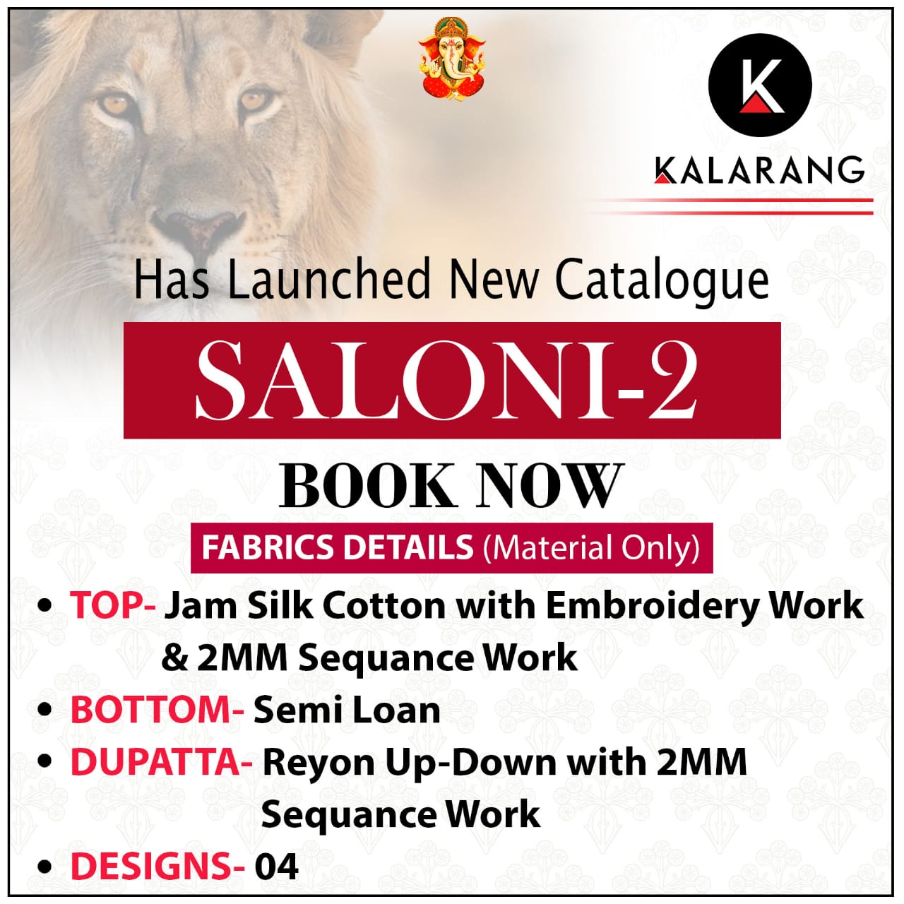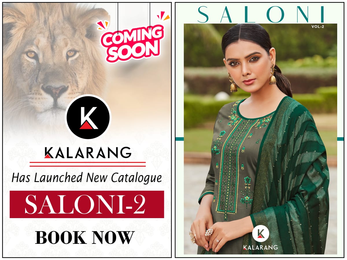 📌 KALARANG has launched Catalog name : * SALONI VOL-2 * 🔸 Fabric Details 🔸 👚Top:- Jam Silk Cotton With Embroidery Work & 2MM Sequance Work 👖Bottom:- Semi Loan 🧣Dupatta:- Reyon Up-Down With 2MM Sequance Work 👜Total Design:- 4 Price 775 ⏰Dispatching 5 to 6 days later 📝Booking started from now... 📞Order yours soon... |