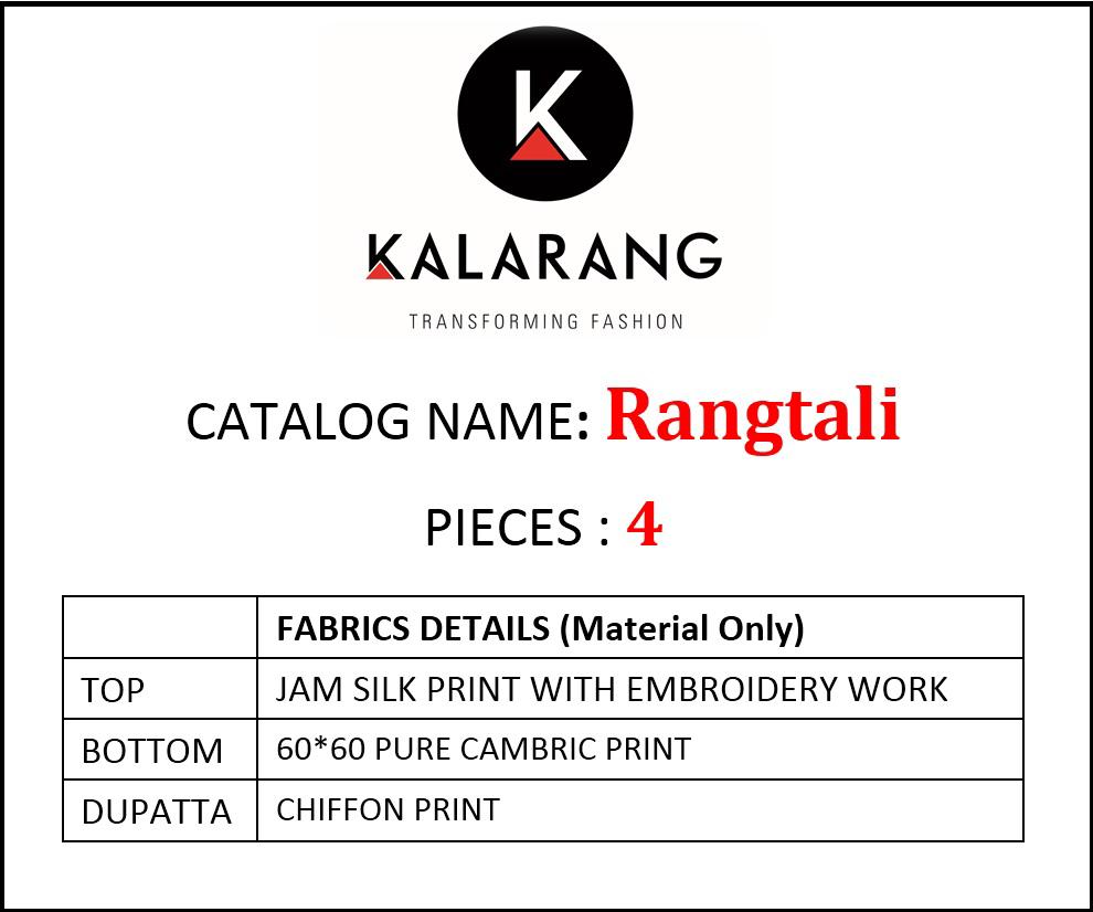 Kalarang Rangtali Jam Silk Print With Embroidery Salwar Suits