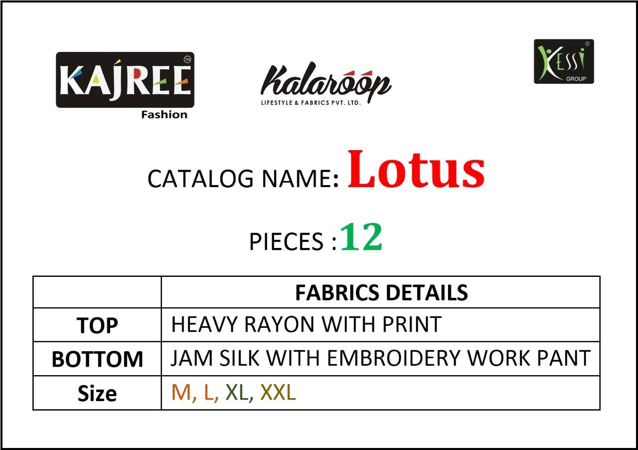 Kalaroop Lotus By Kajree Rayon Printed Top With Jam Silk Pant Collection