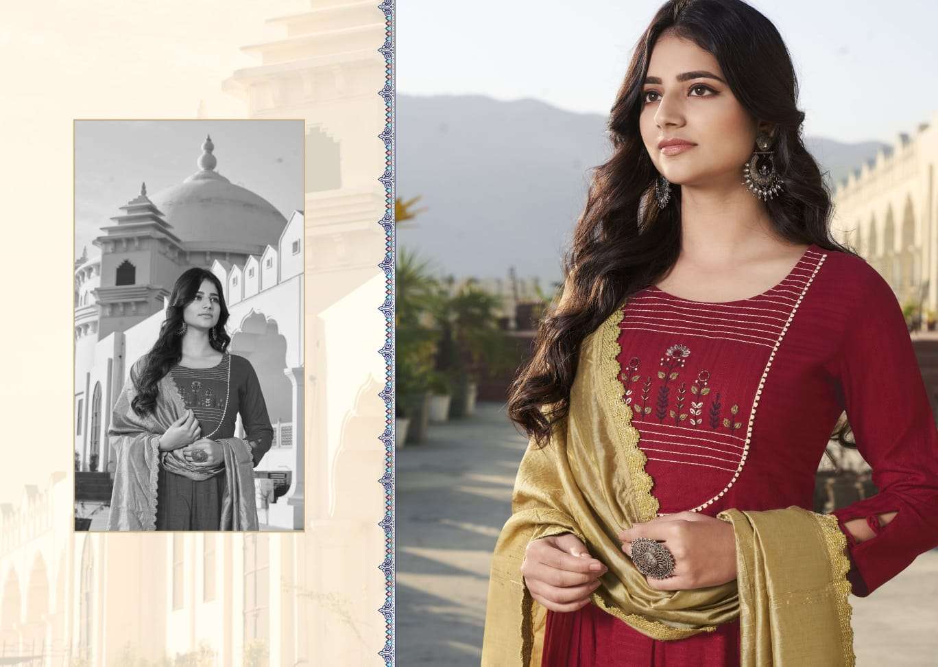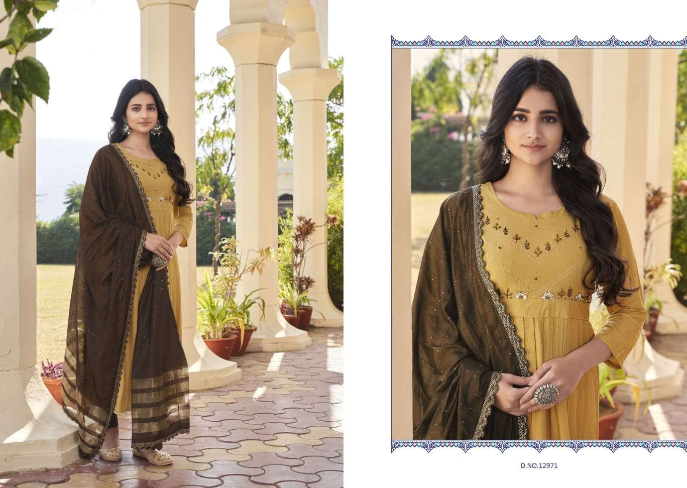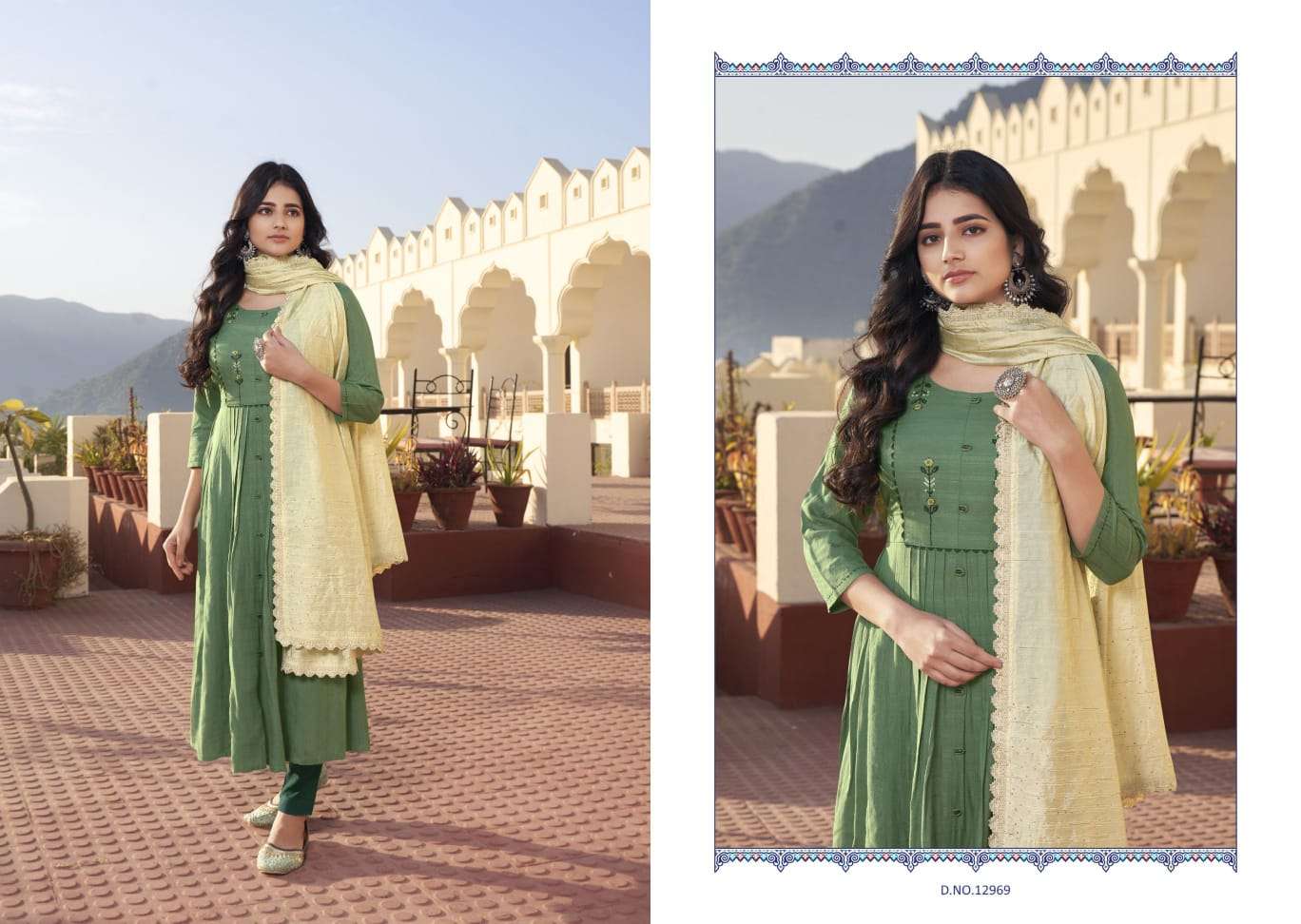 kalaroop olivia fancy khatli work readymade kurti with bottom & dupatta