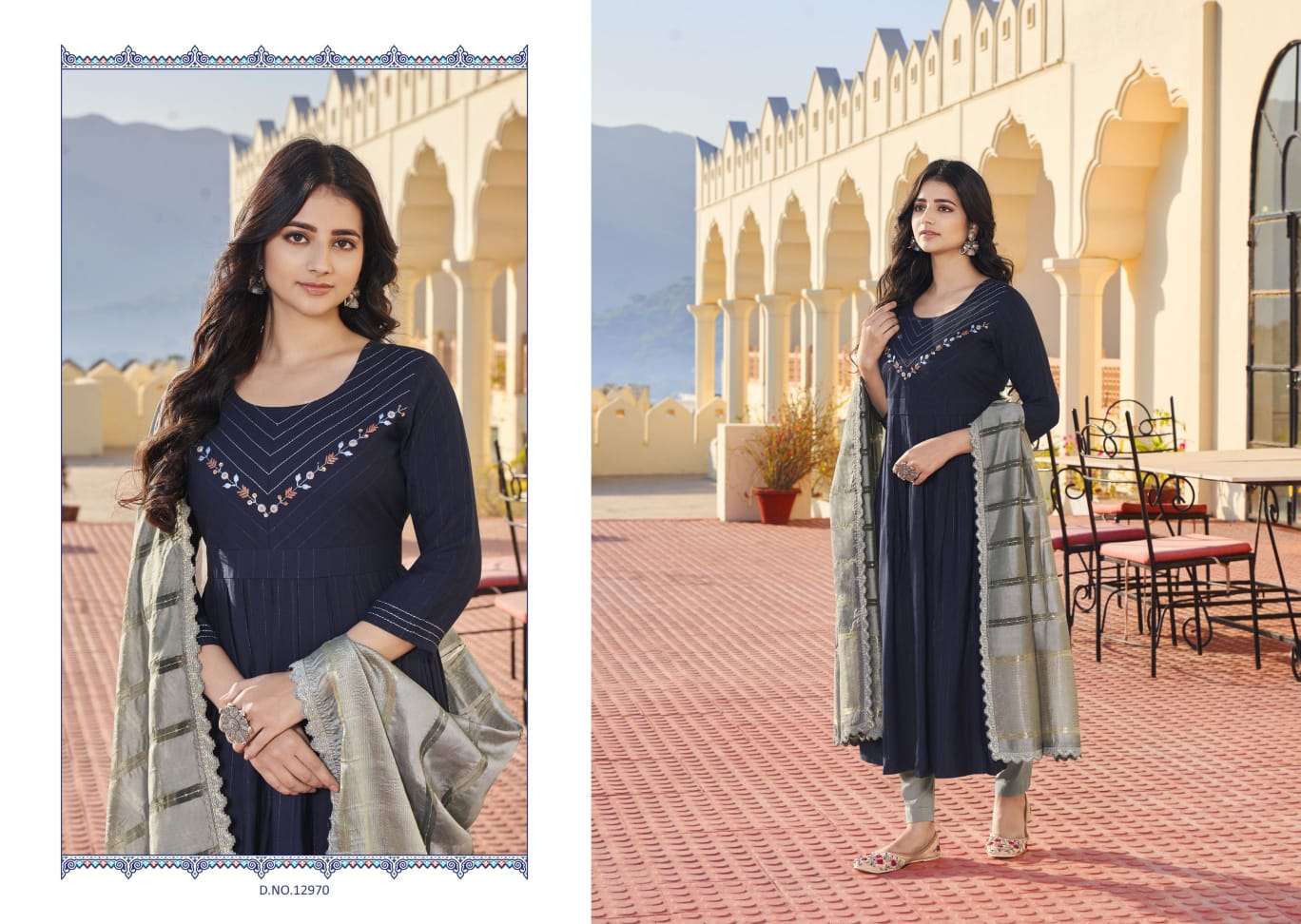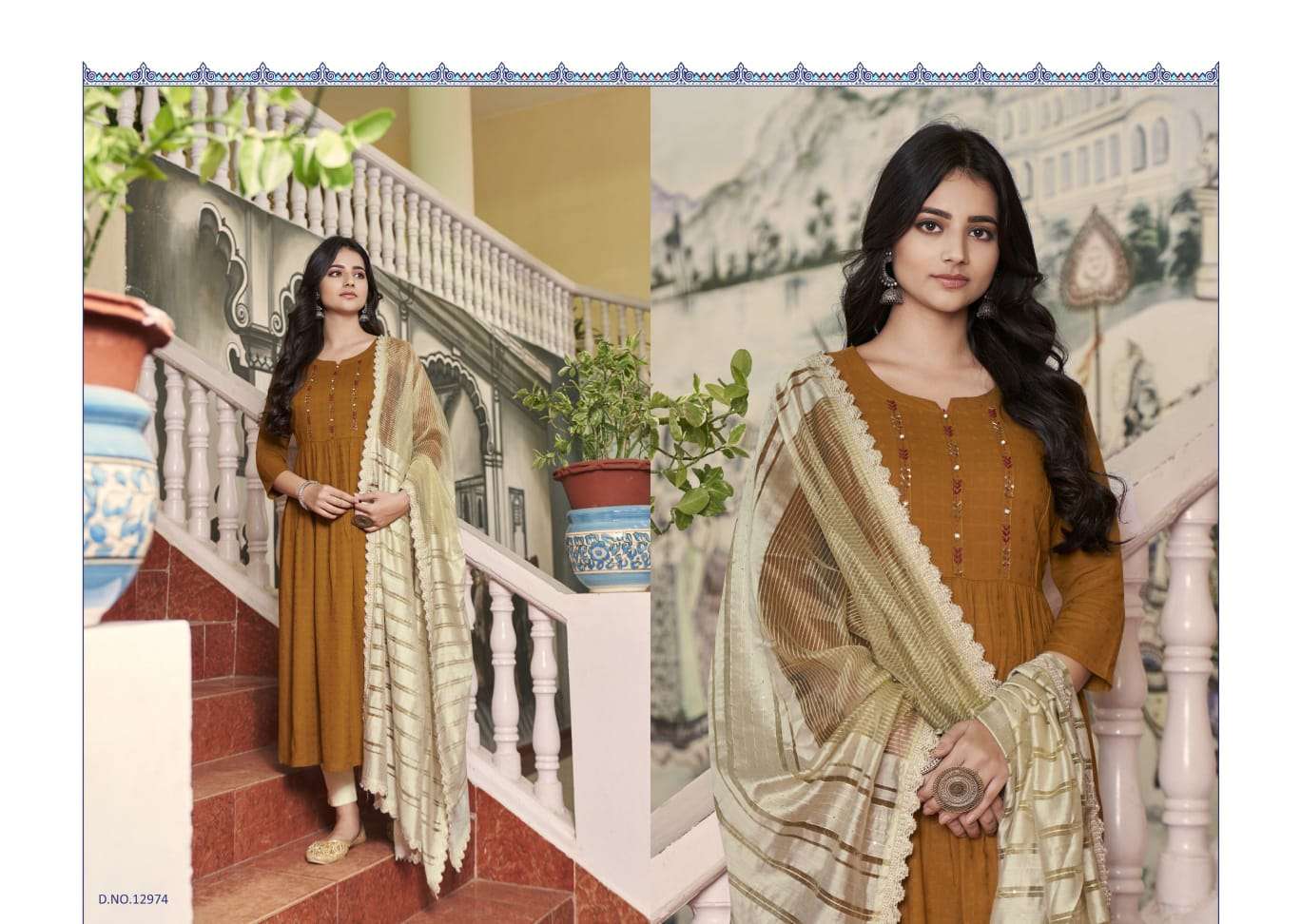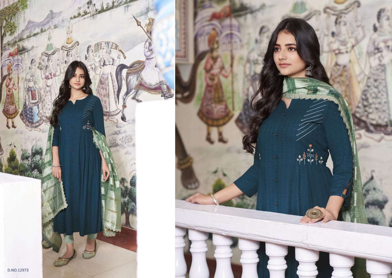 kalaroop olivia fancy khatli work readymade kurti with bottom & dupatta