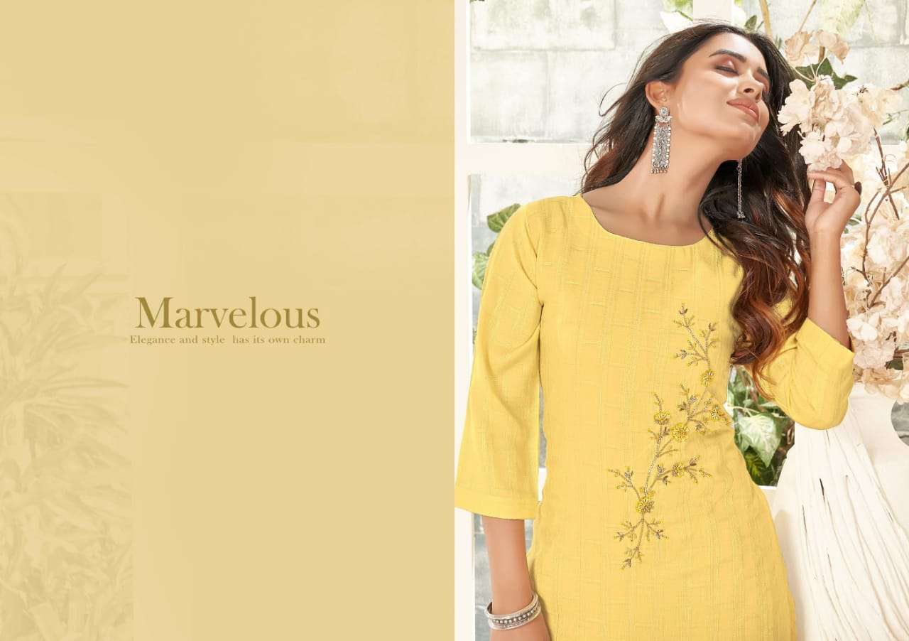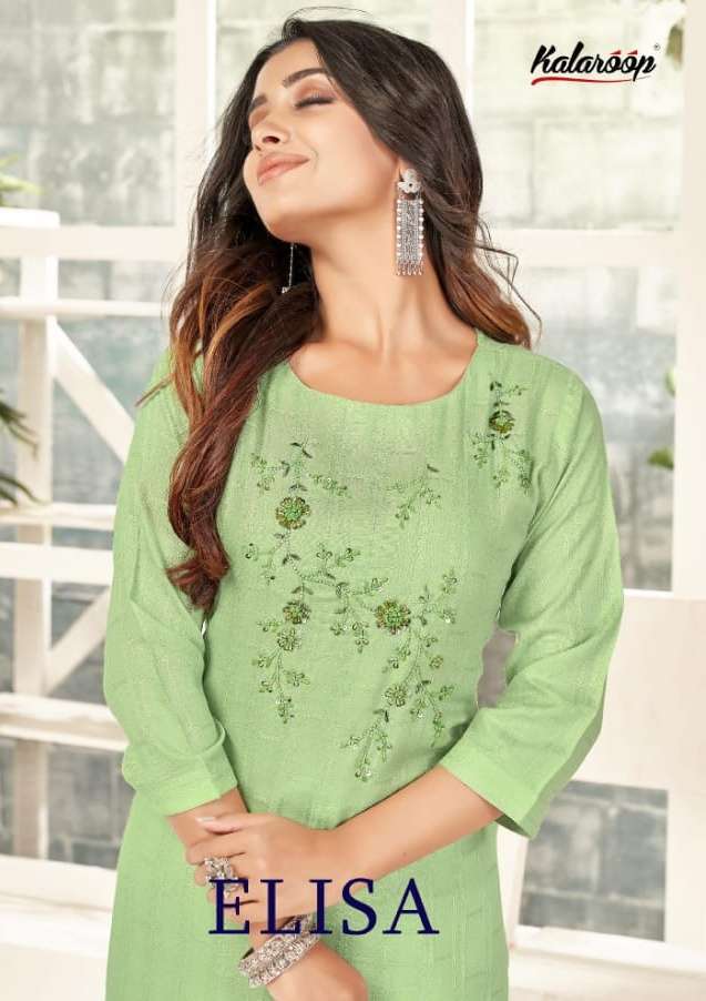 kalaroop present elisa fancy italian rayon handwork kurtis