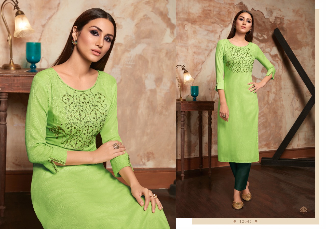 Kalaroop Present Kivi Rayon Formal Wear Kurtis Wholesaler